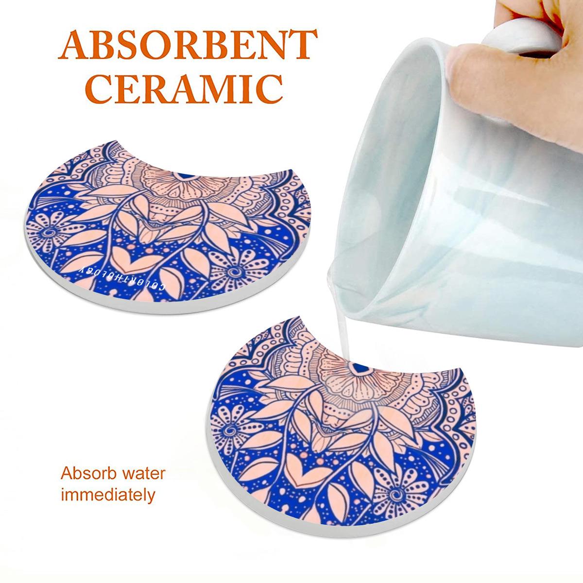 Whether used individually or combined into an expandable trivet, these crescent-shaped ceramic coasters set offer versatile protection for your kitchen and dining areas. The ultimate blend of elegance and functionality and crafted from high-quality absorbent ceramic stone, these coasters are designed to keep your table dry and stain-free from beverage spills. Measuring 4.15 inches in diameter, each coaster is perfectly suited for all types of glasses, mugs, and cups. The anti-abrasion cork backing not only prevents surface scratches but also ensures extra grip to handle any bumps or drops with ease.