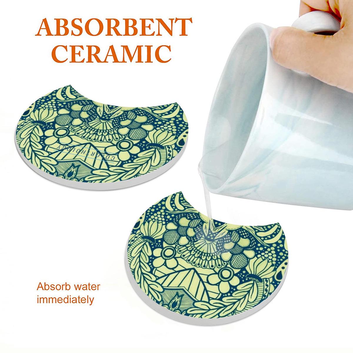 Whether used individually or combined into an expandable trivet, these crescent-shaped ceramic coasters set offer versatile protection for your kitchen and dining areas. The ultimate blend of elegance and functionality and crafted from high-quality absorbent ceramic stone, these coasters are designed to keep your table dry and stain-free from beverage spills. Measuring 4.15 inches in diameter, each coaster is perfectly suited for all types of glasses, mugs, and cups. The anti-abrasion cork backing not only prevents surface scratches but also ensures extra grip to handle any bumps or drops with ease.