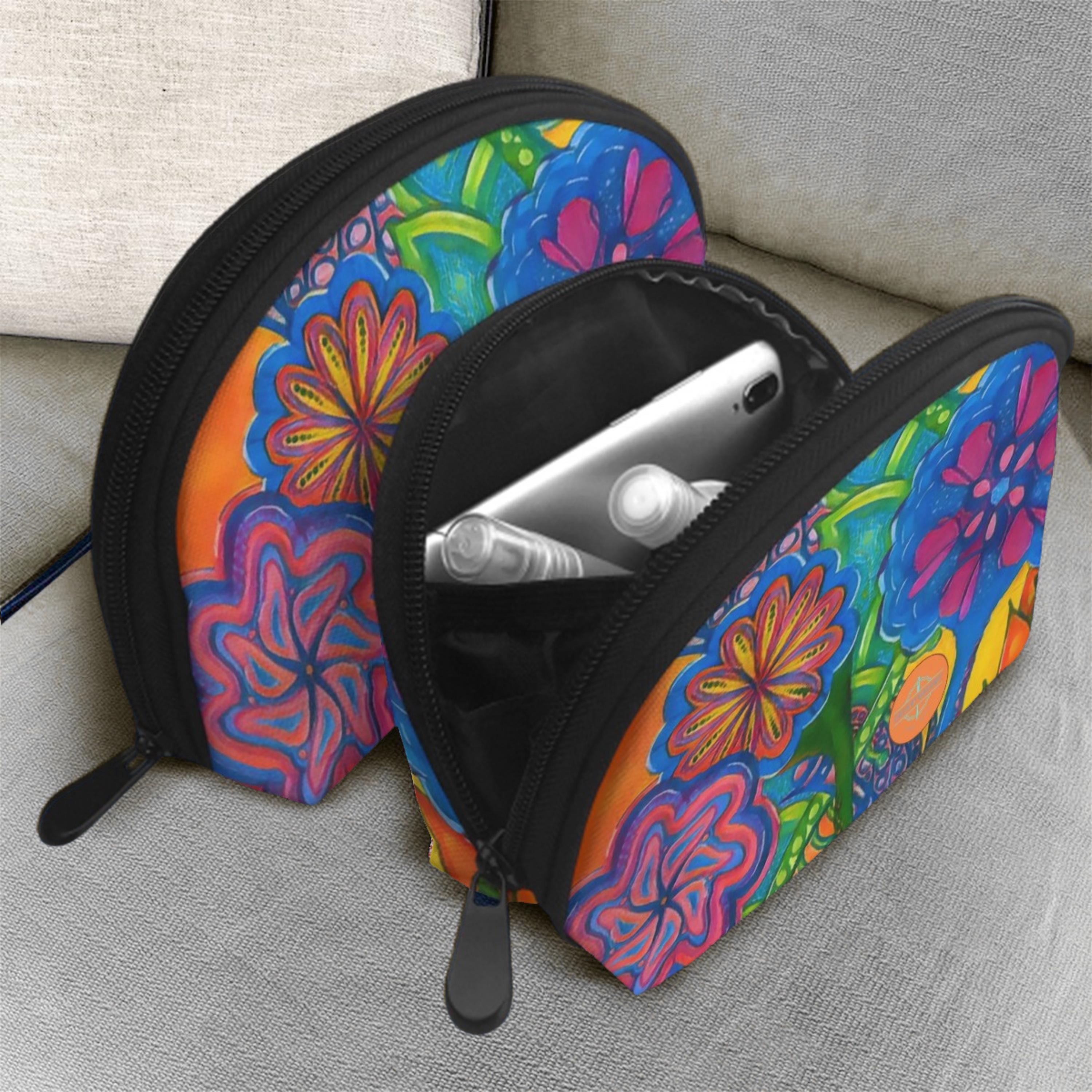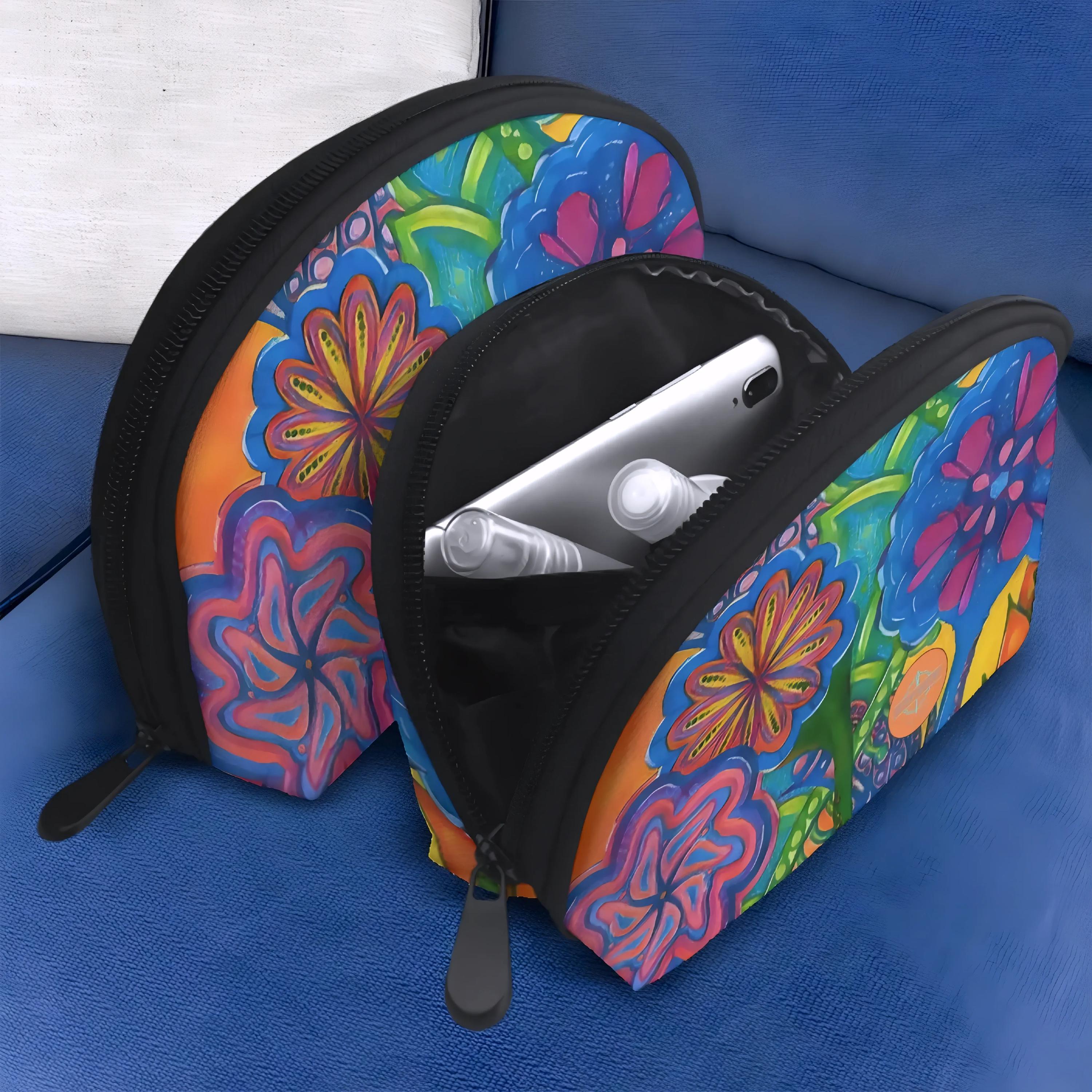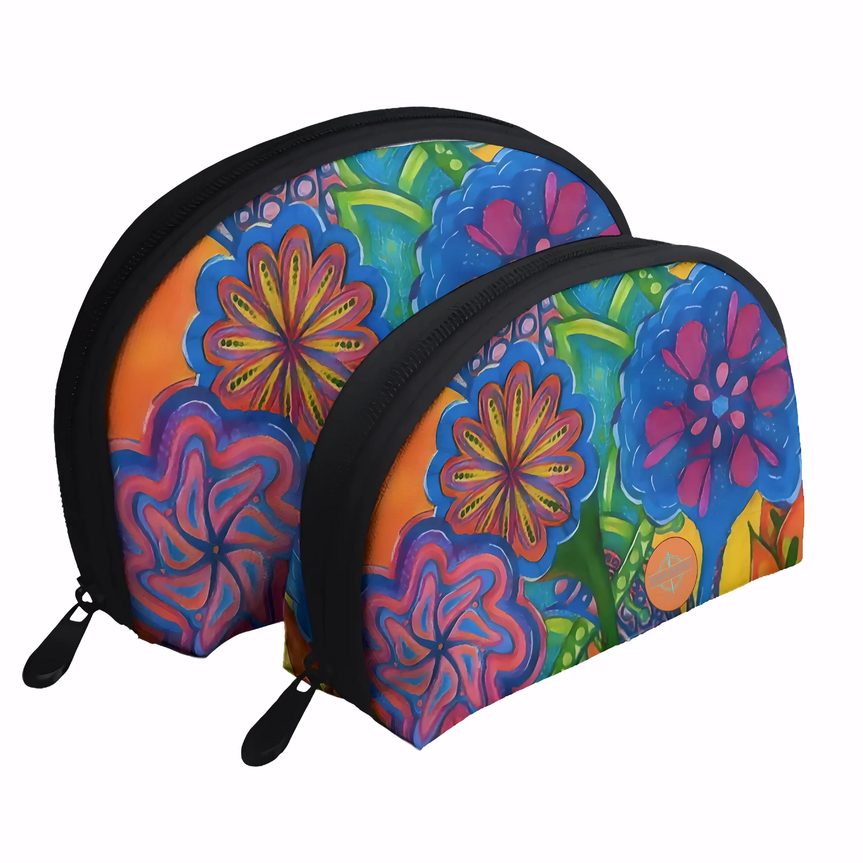 Spiral Flowers Toiletry Bags Set of 2. Makeup Bag. Travel Accessories