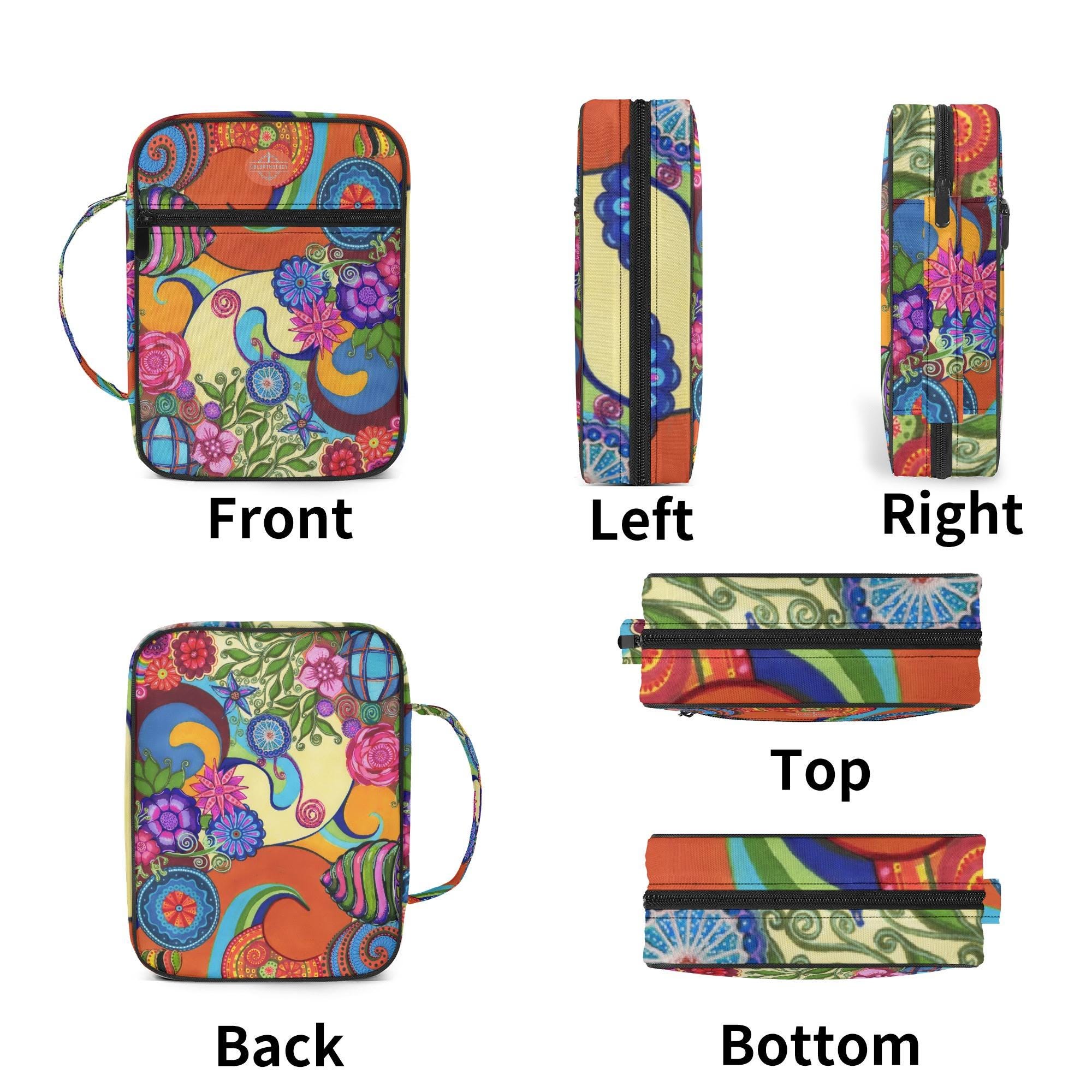 Perfect Book Cover for Book lovers or Church. Religious Bible Cover Church Bag Bible Handbag with Handle and Zippered Pocket. Fits small sketchbook, small ipads, kindle, or other eBook readers