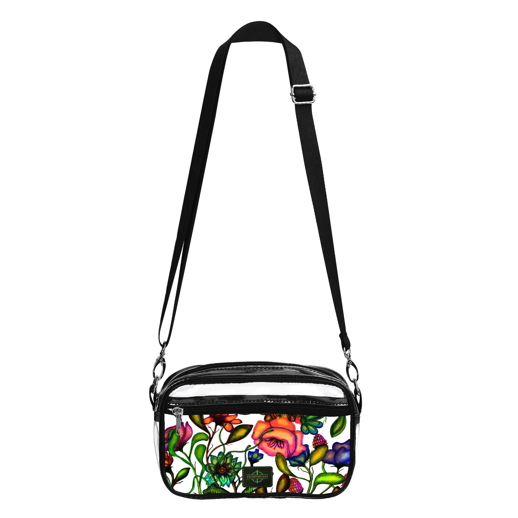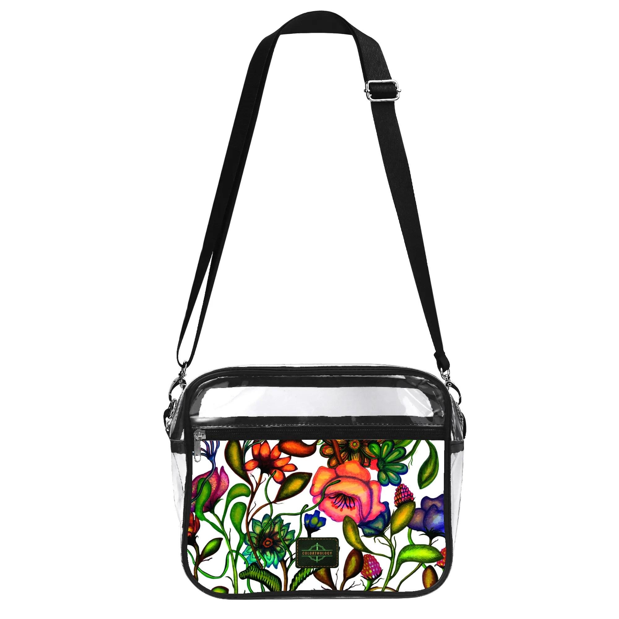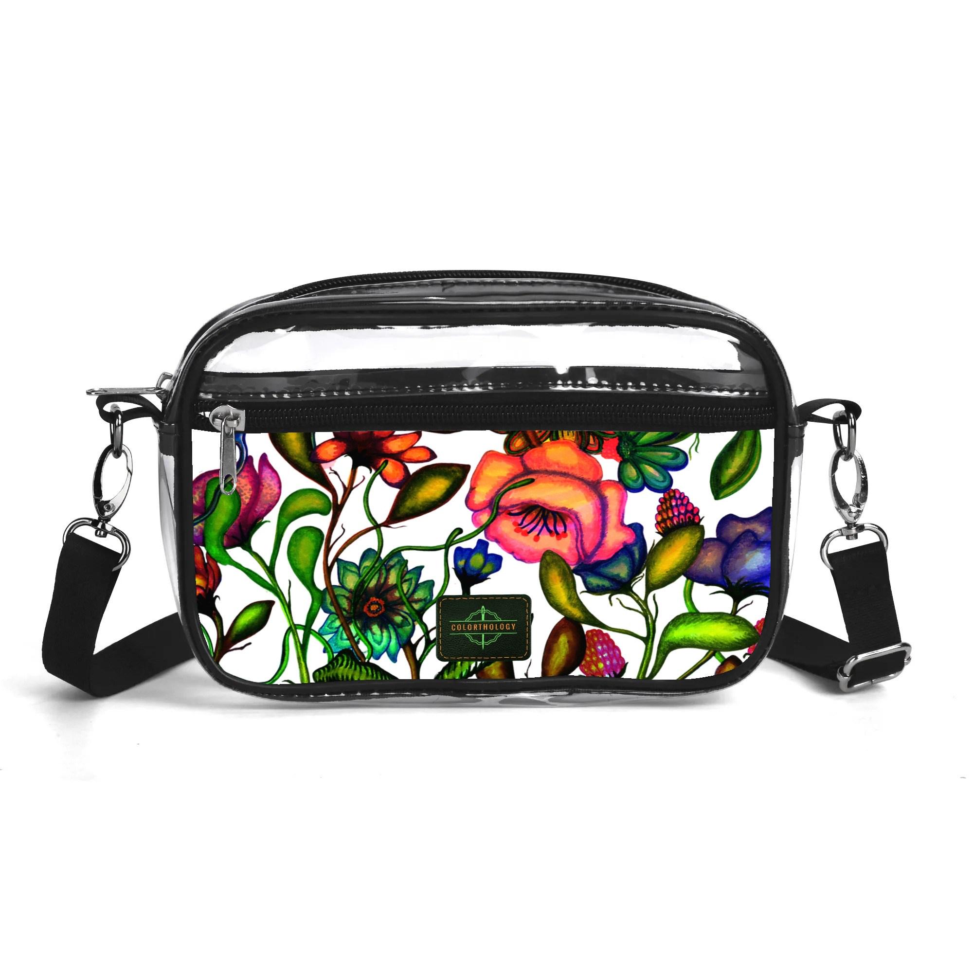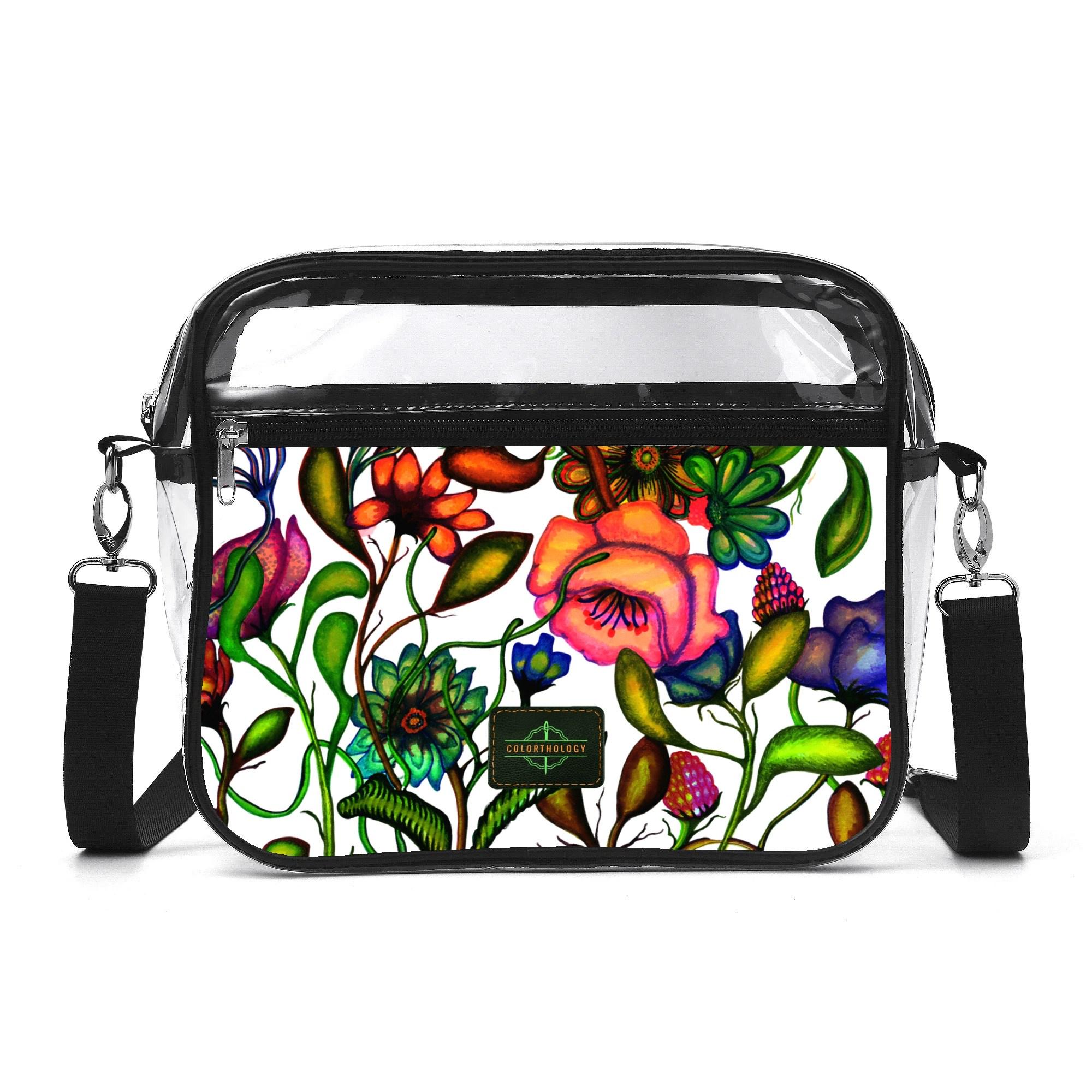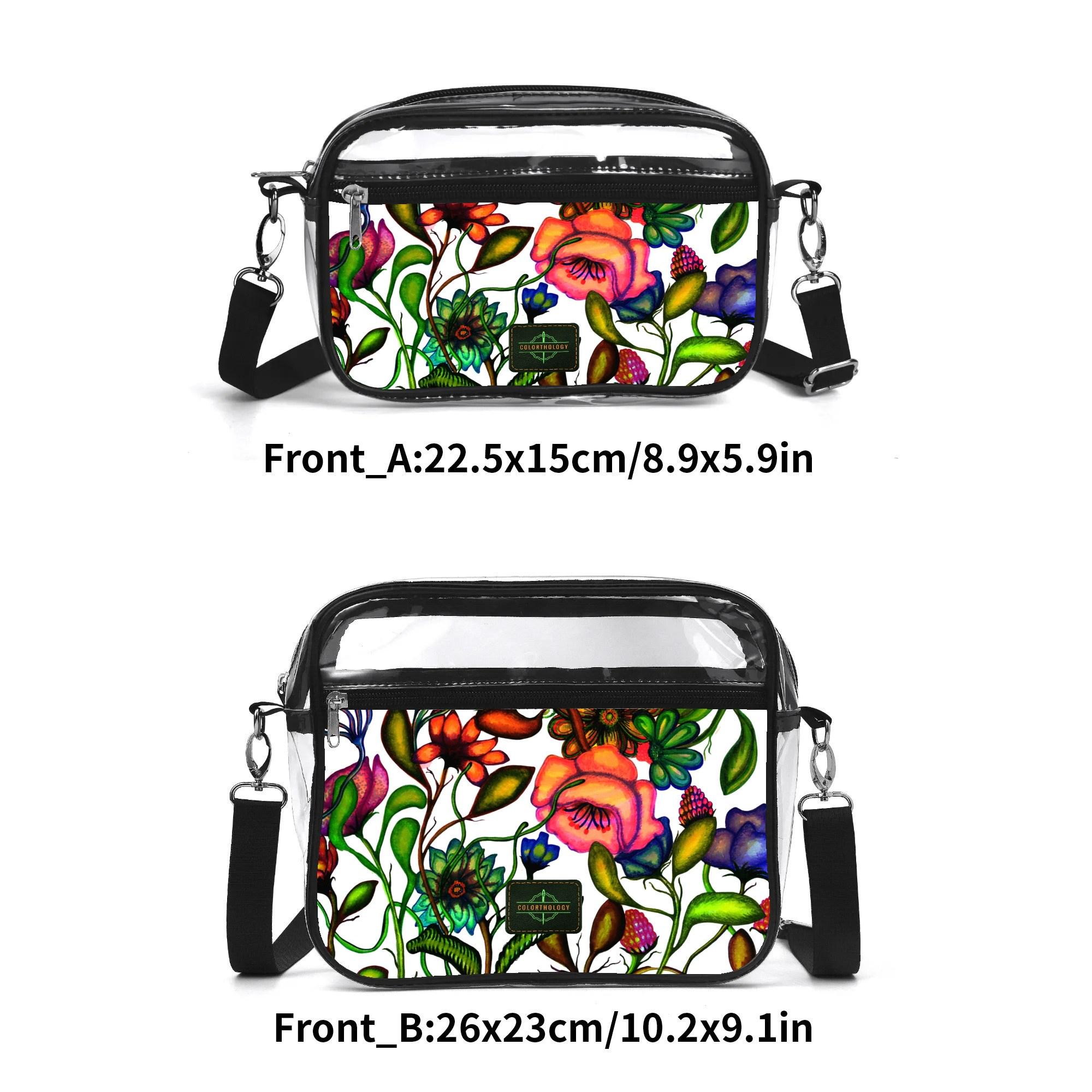 The Rainbow Garden Clear Fashion Waterproof Transparent Concert Bag is your perfect companion for sunny adventures! Crafted from fully transparent PVC material with UV printing on the front, it's both stylish and functional. The zipper closure and front zipper pocket keep your essentials secure, while the adjustable cross-body shoulder strap offers versatile carrying options. Available in two sizes, S/M, it's ideal for any occasion, from beach trips to water park adventures.