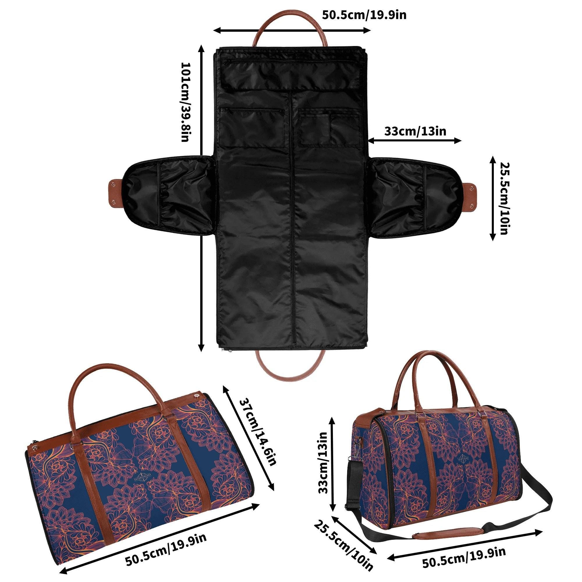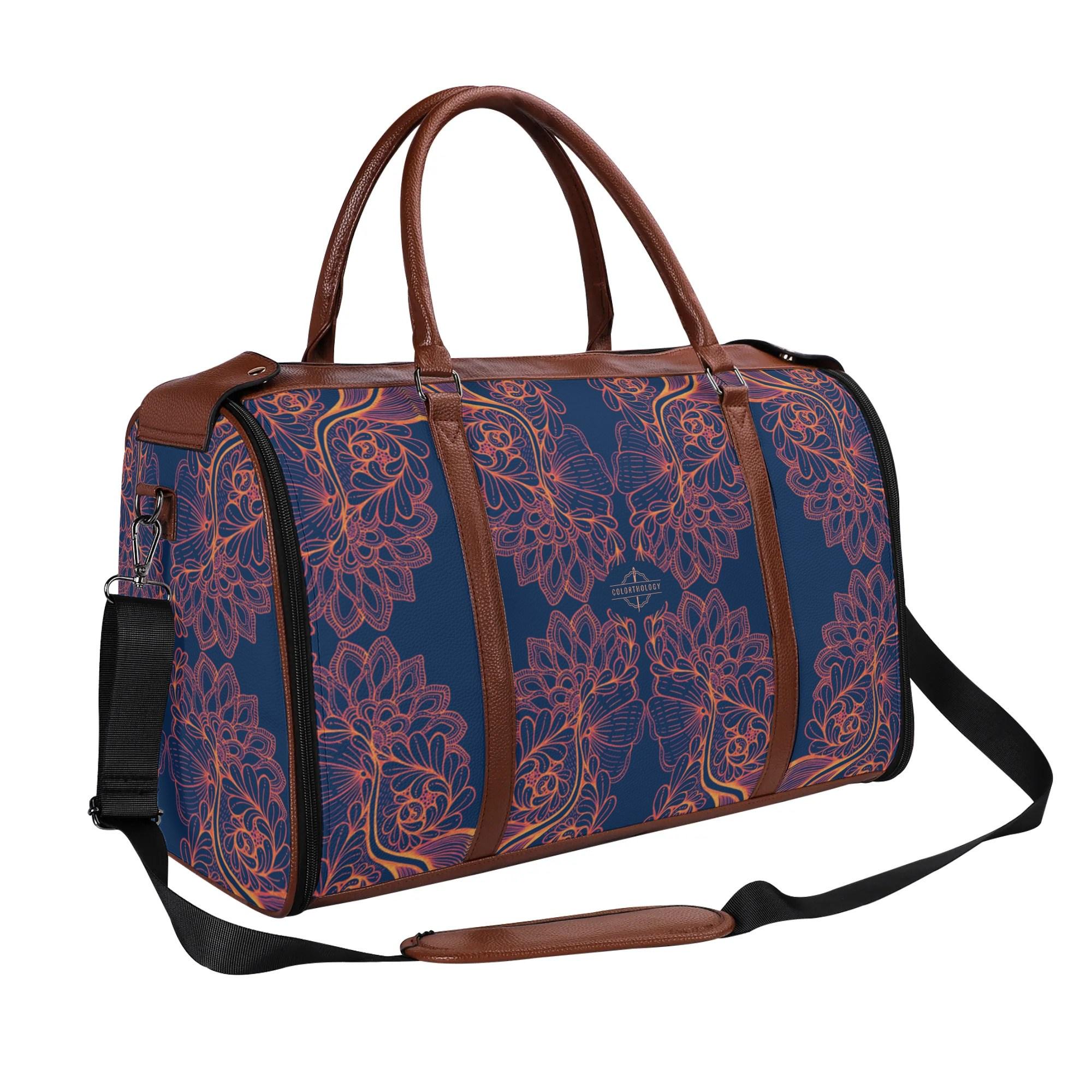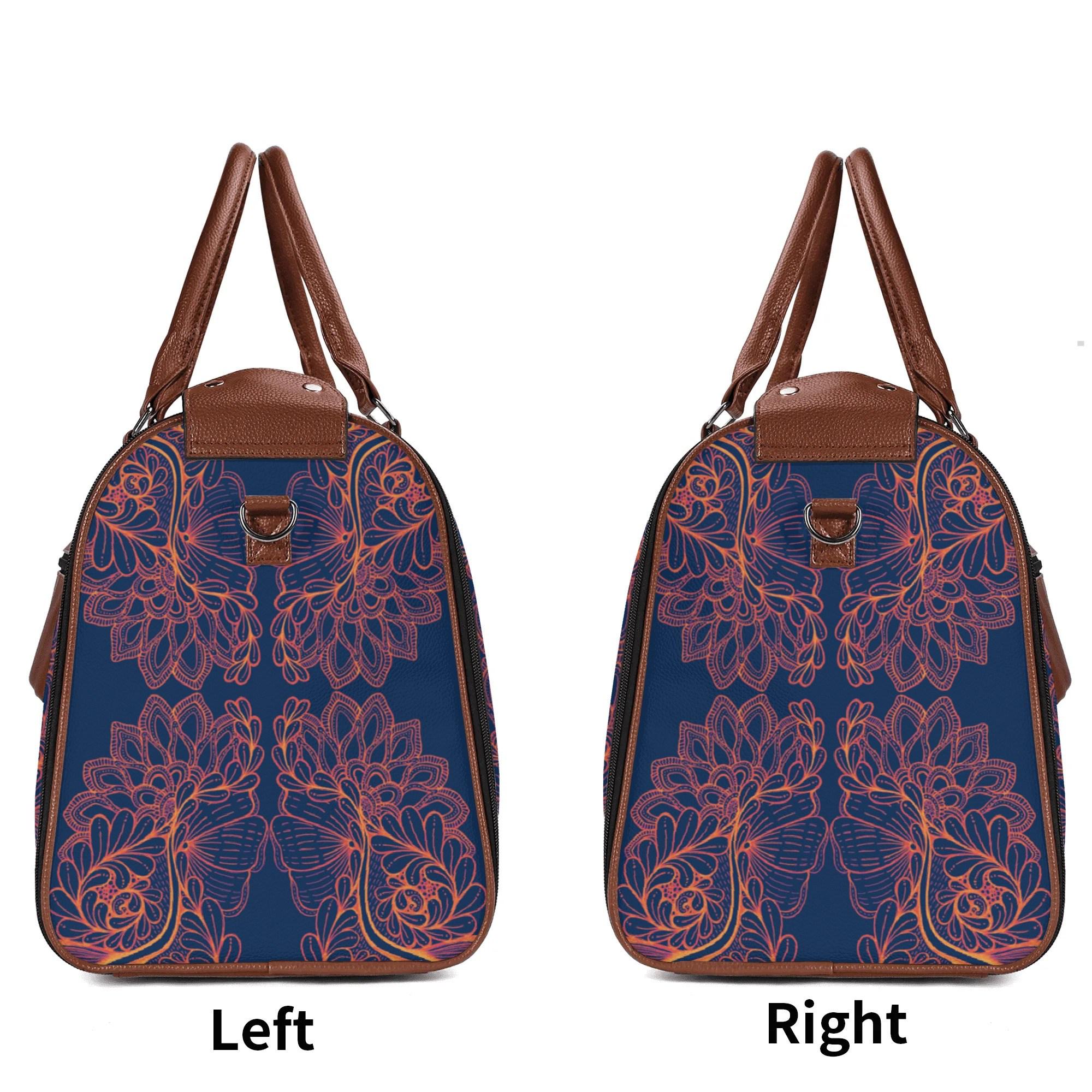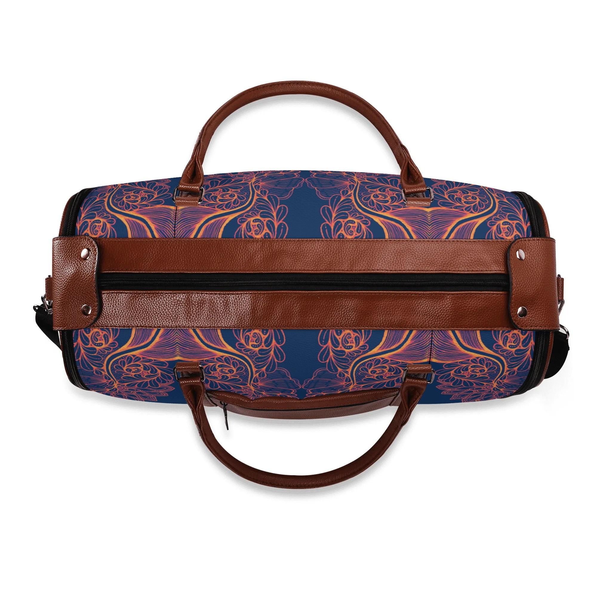 Navy Brocadesque Vegan Leather Duffle Bag. Foldable Travel Bag