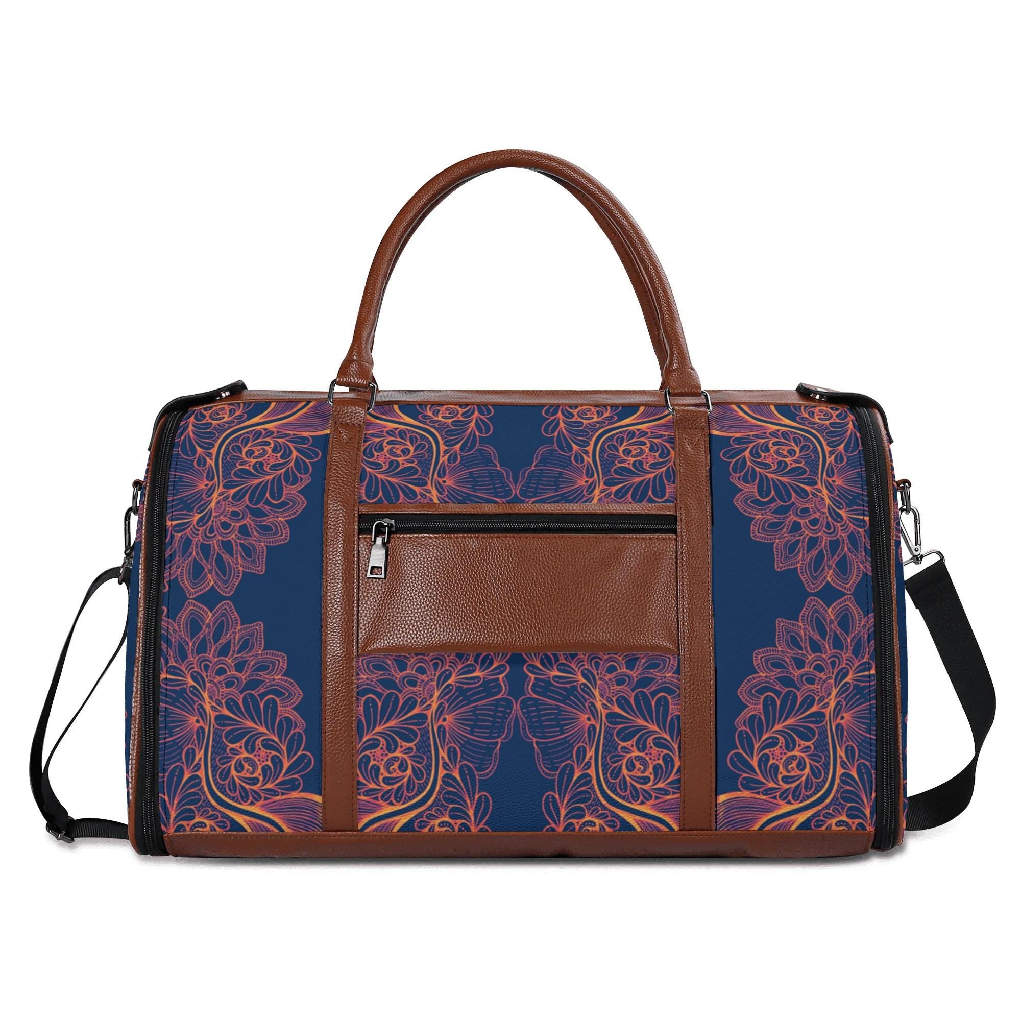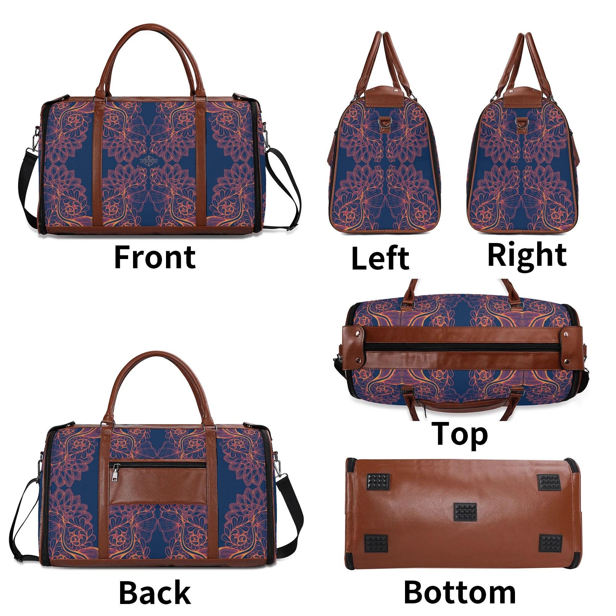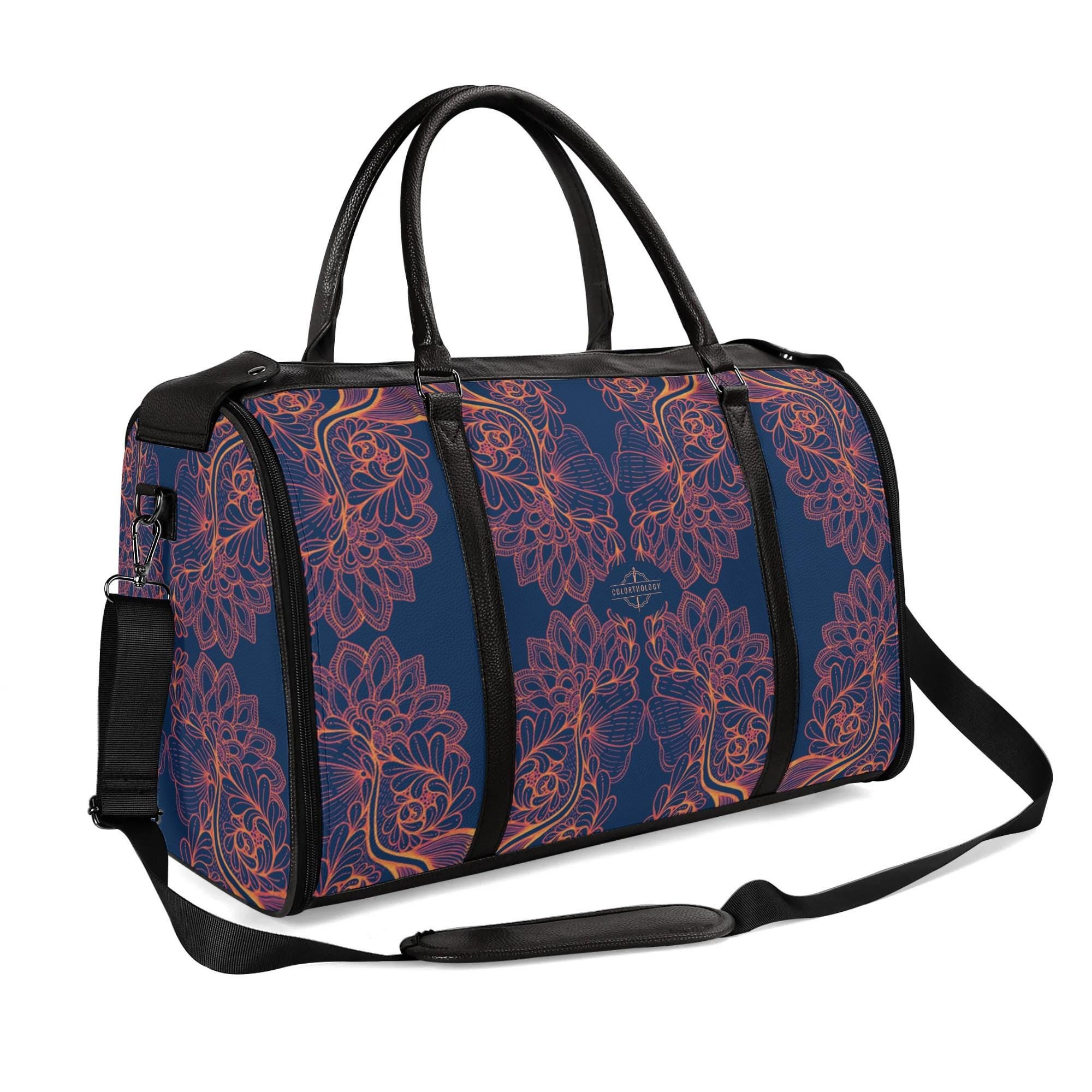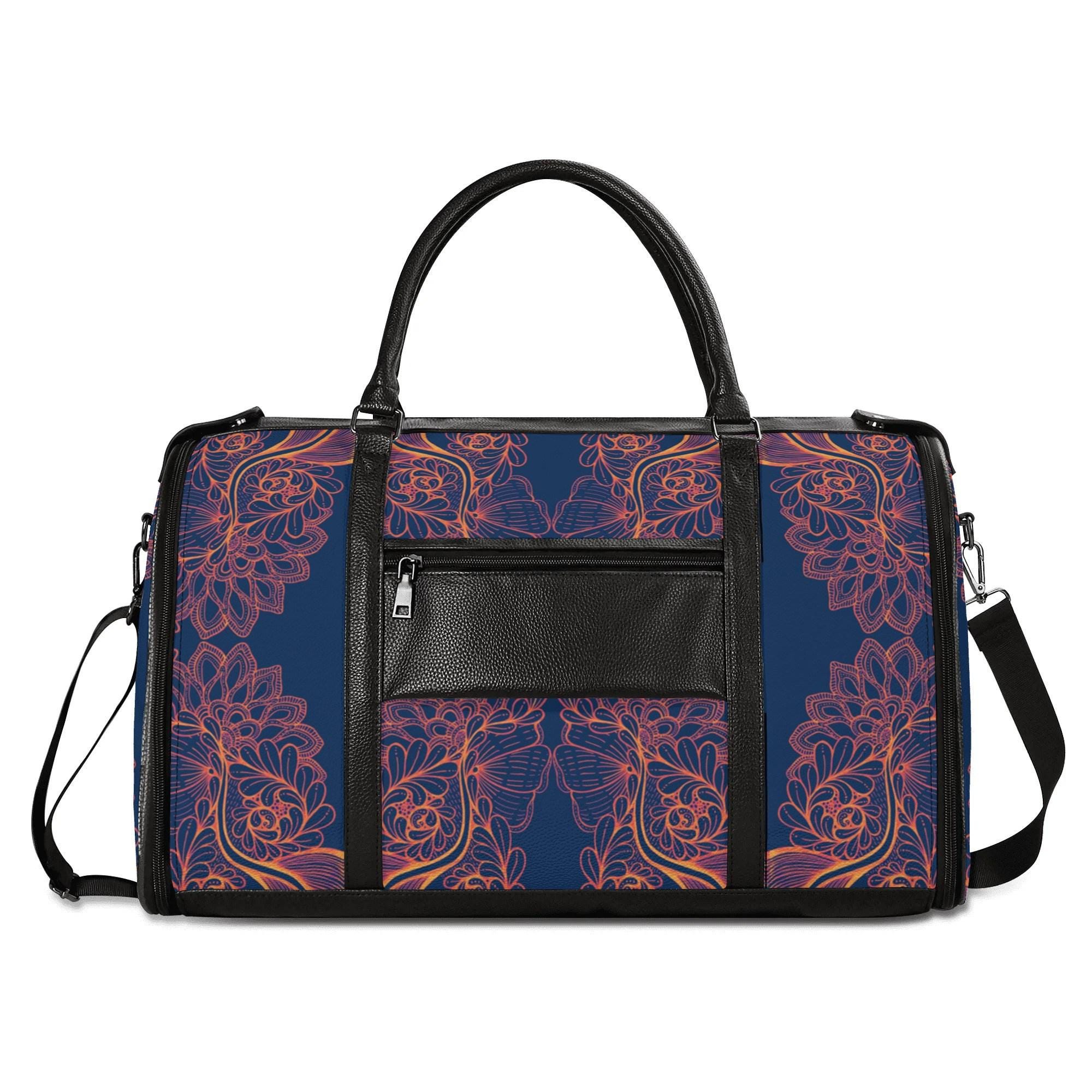 Navy Brocadesque Vegan Leather Duffle Bag. Foldable Travel Bag