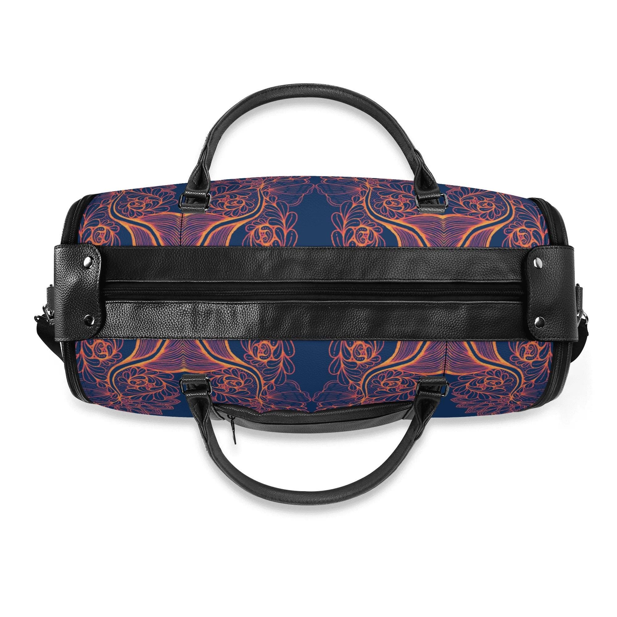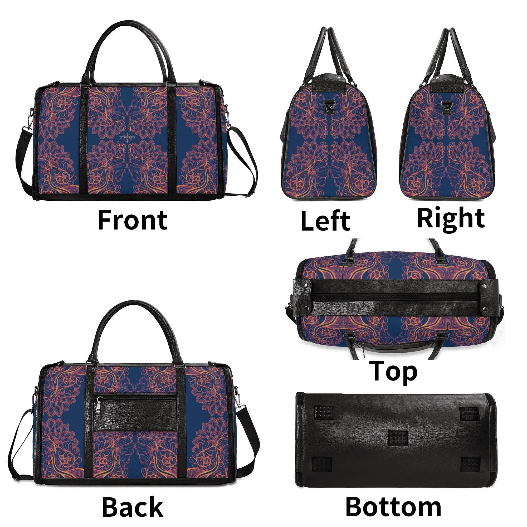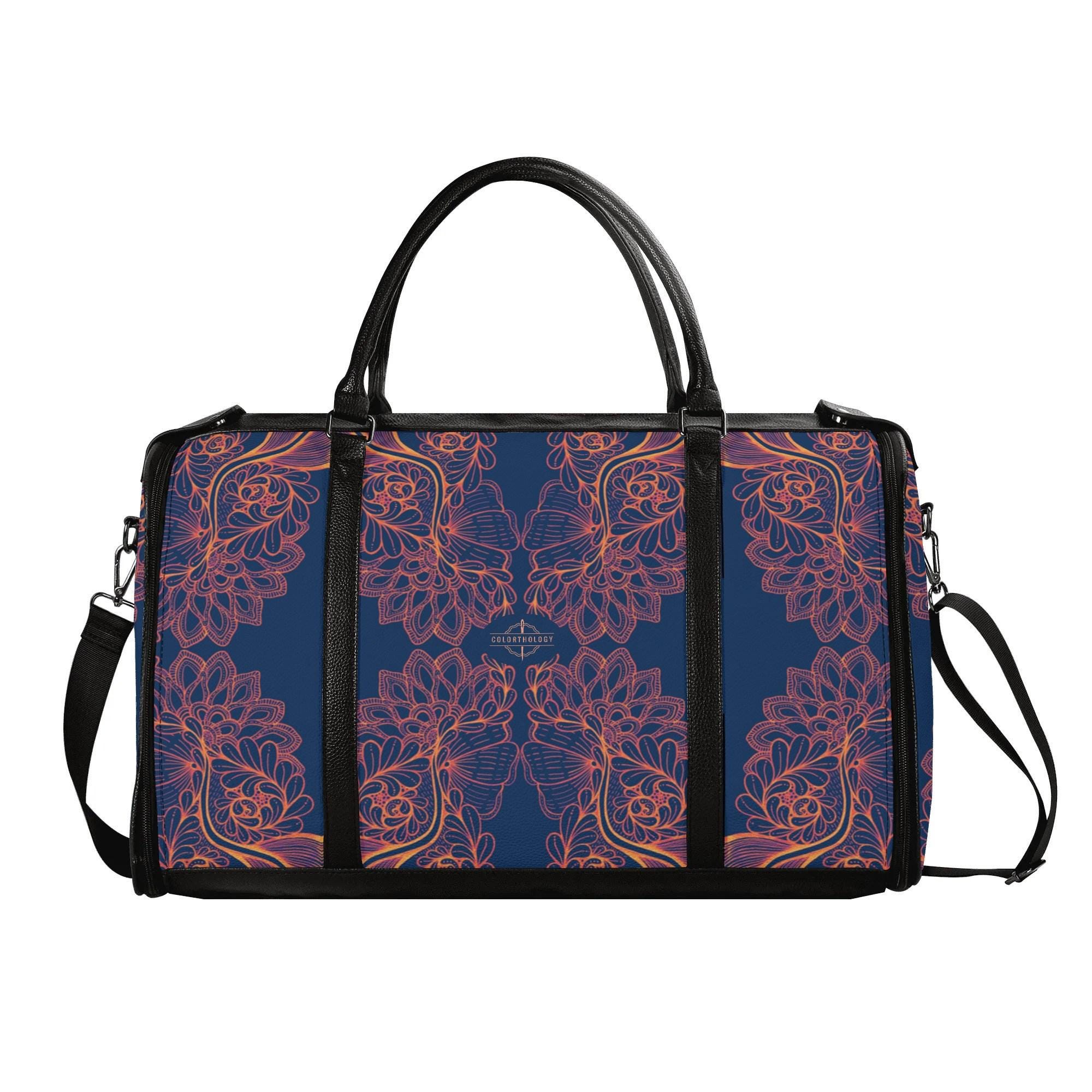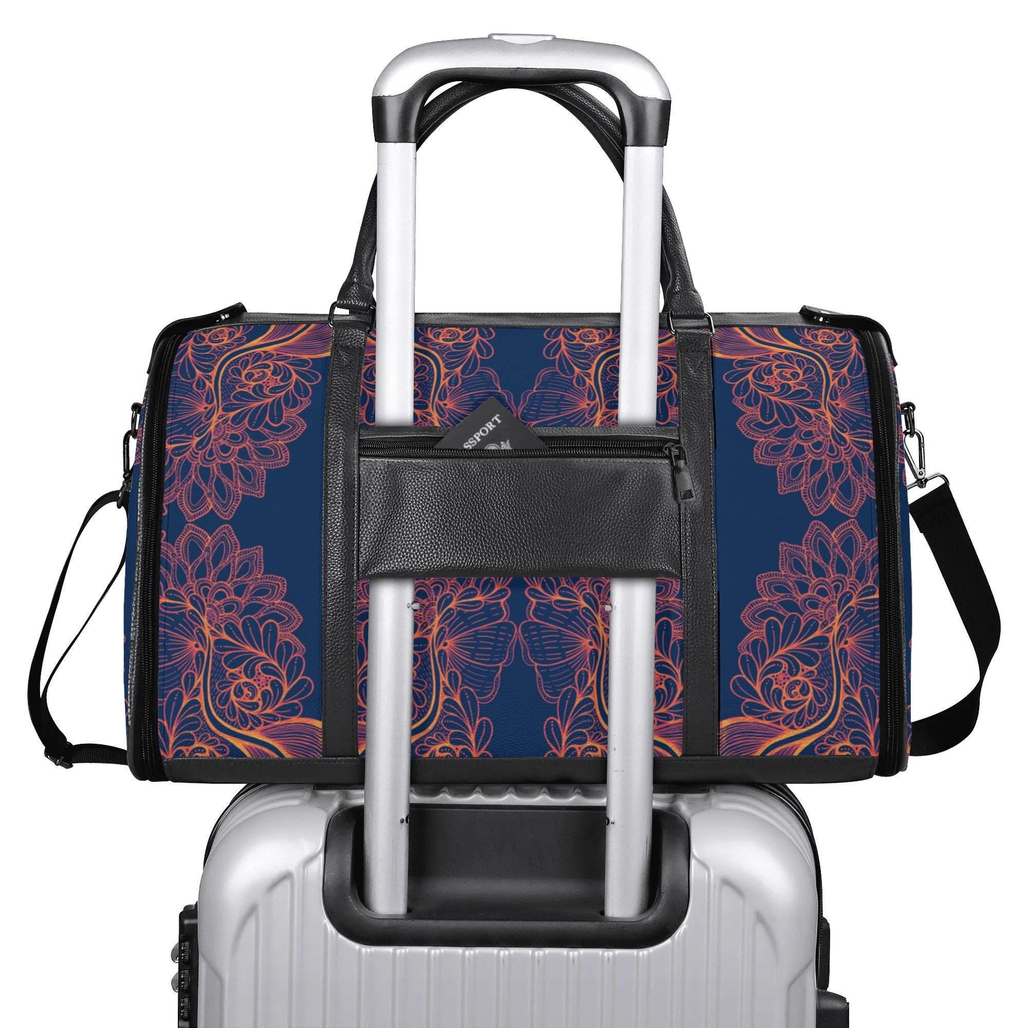 Navy Brocadesque Vegan Leather Duffle Bag. Foldable Travel Bag