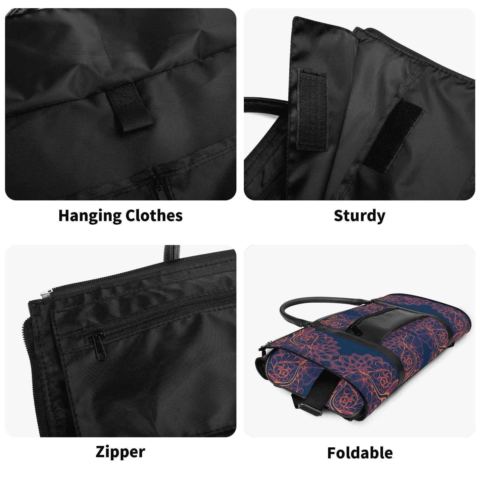 * Features : It features a roomy main compartment that easily holds a variety of items , a hanger lanyard to hanging your suits ,and with storage and zipper pockets for many things . Side pockets for shoes . Metal zippers are engineered for durability, reliability, and easy opening and closing.
