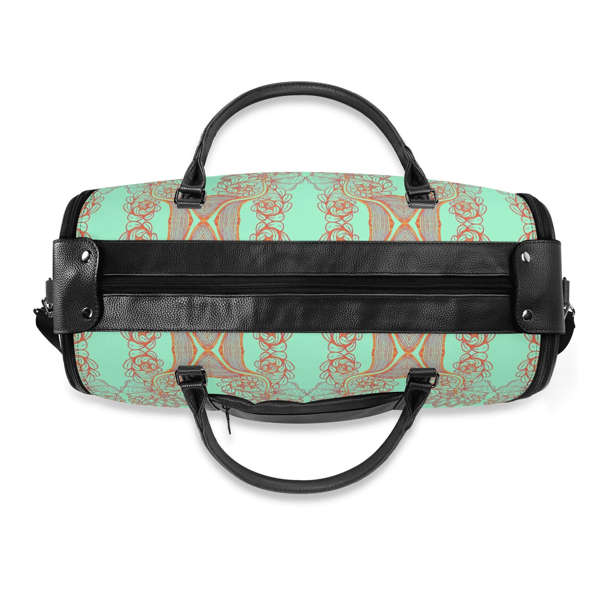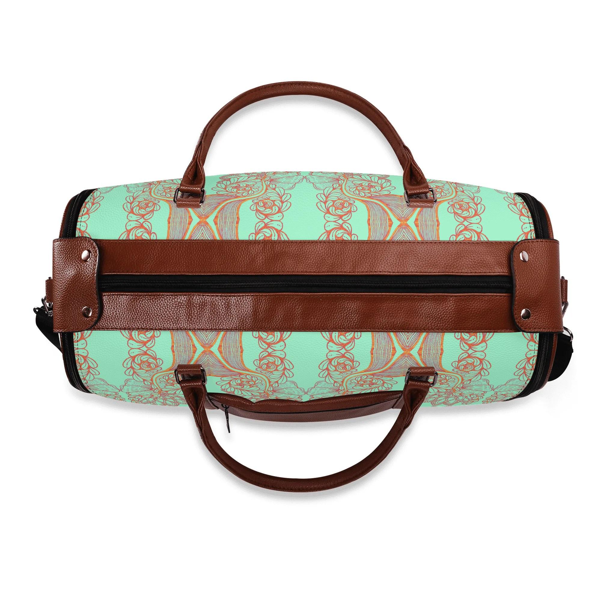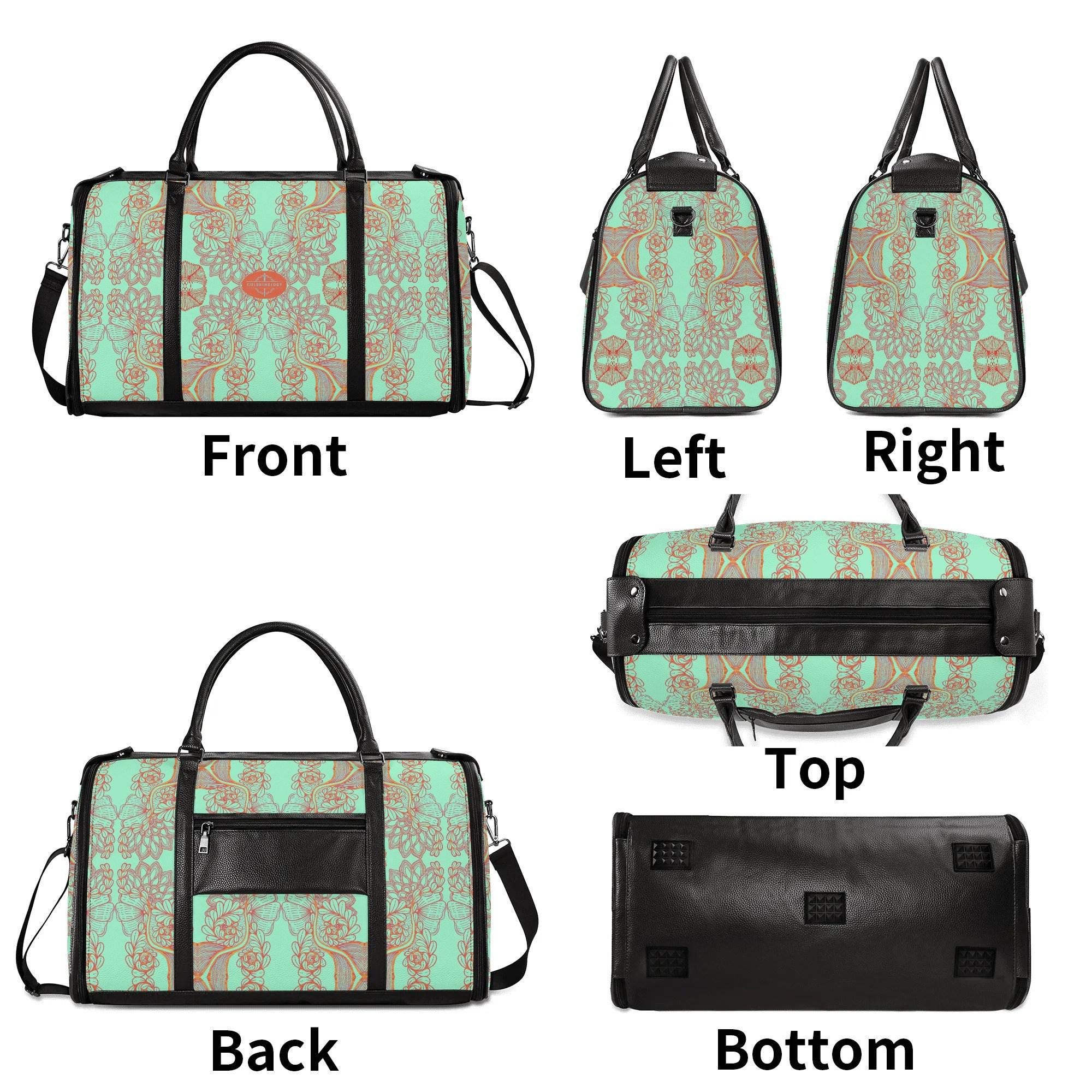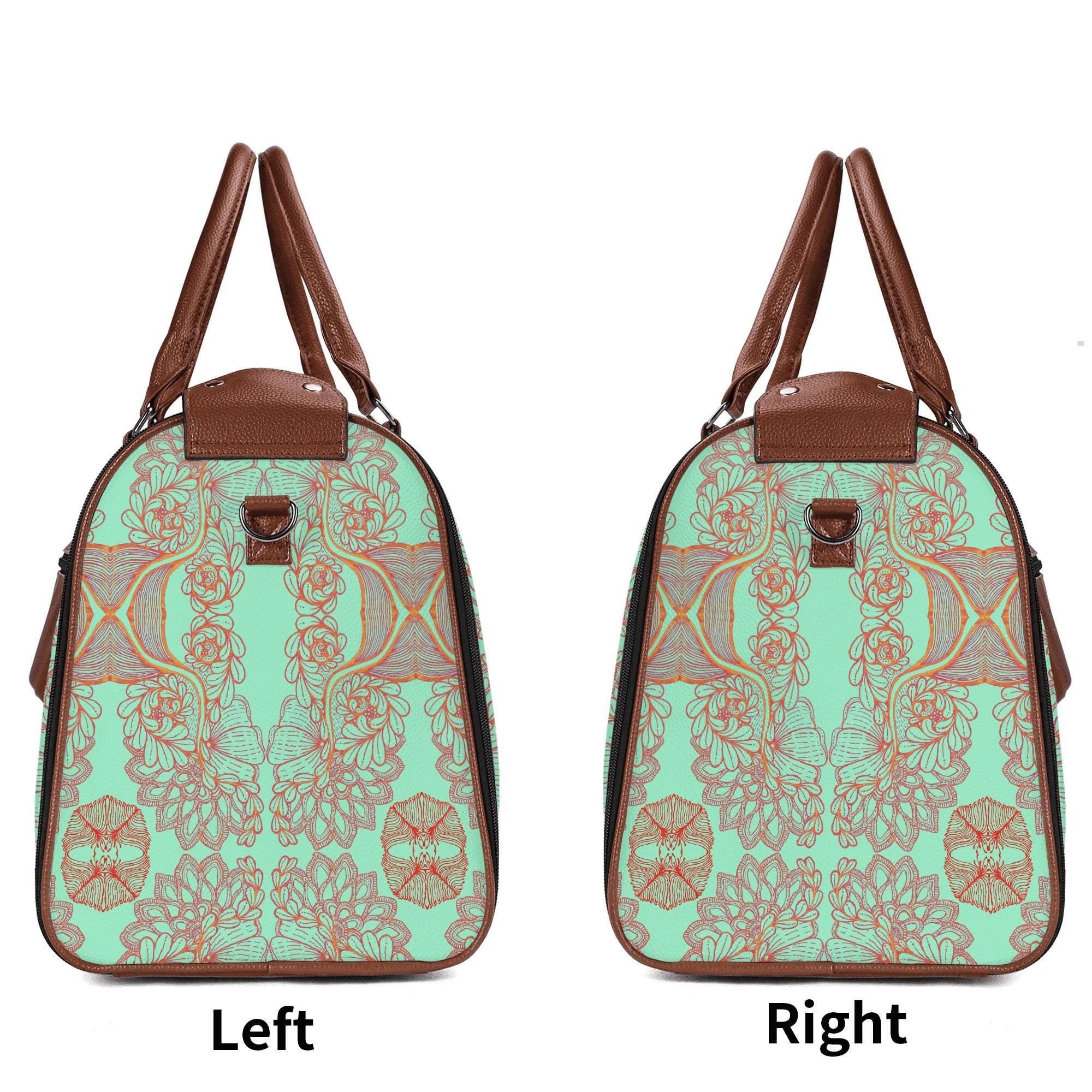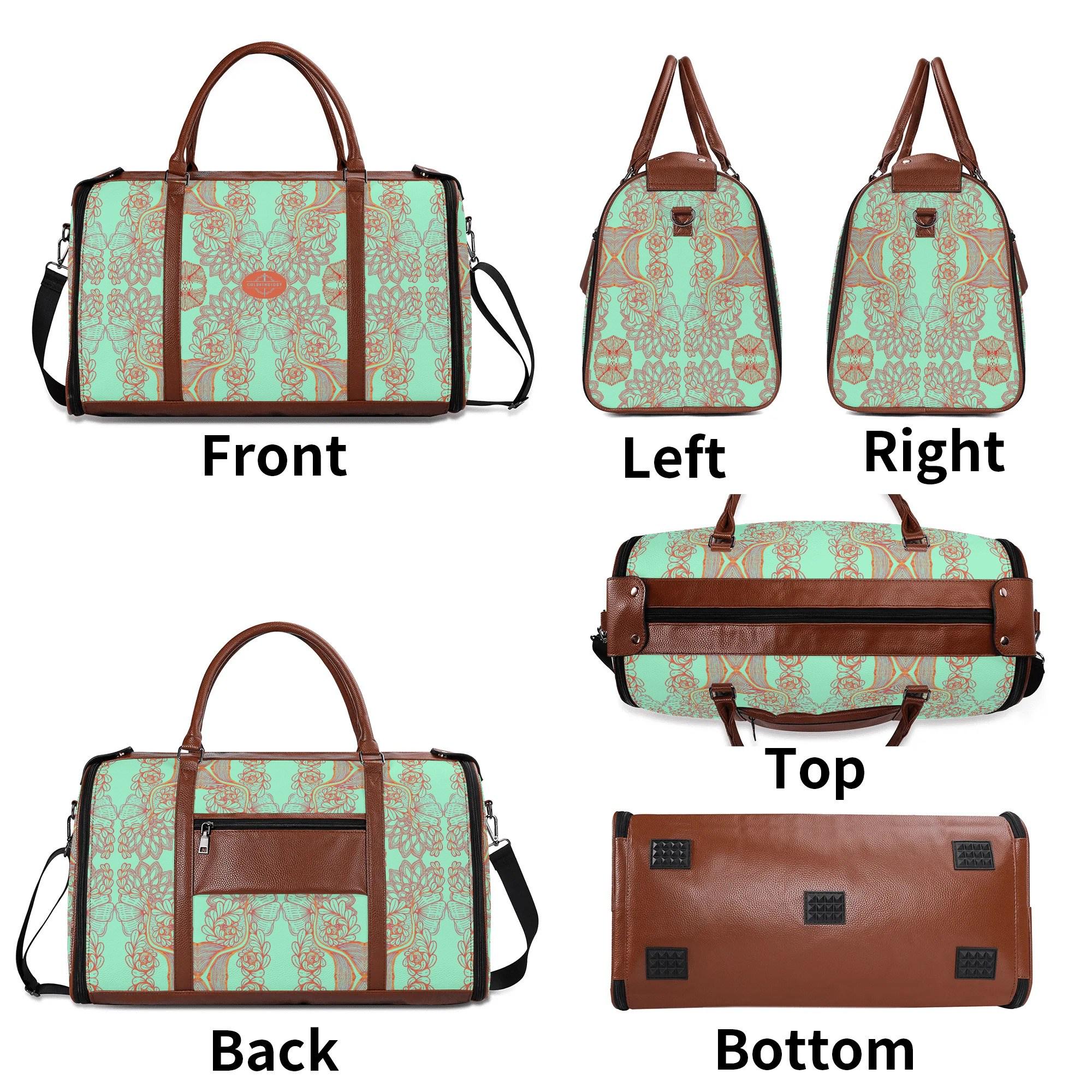 Teal Brocadesque Vegan Leather Duffle Bag. Foldable Travel Bag
