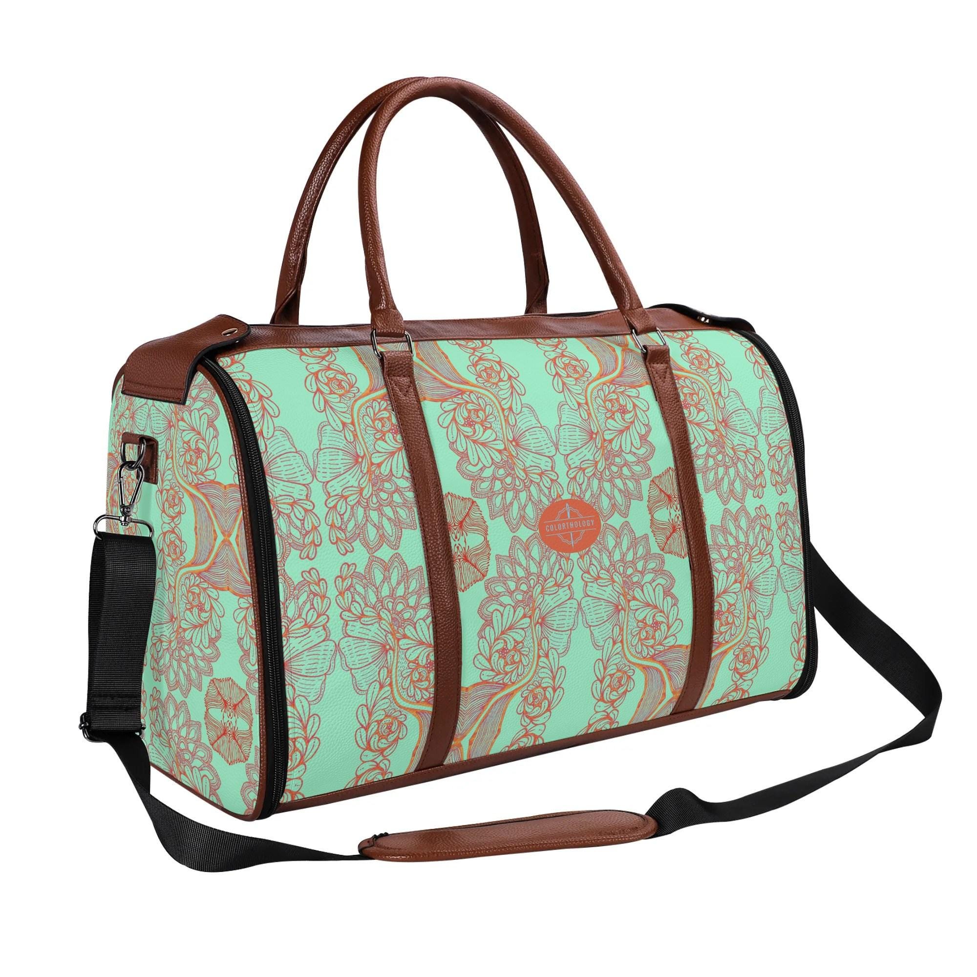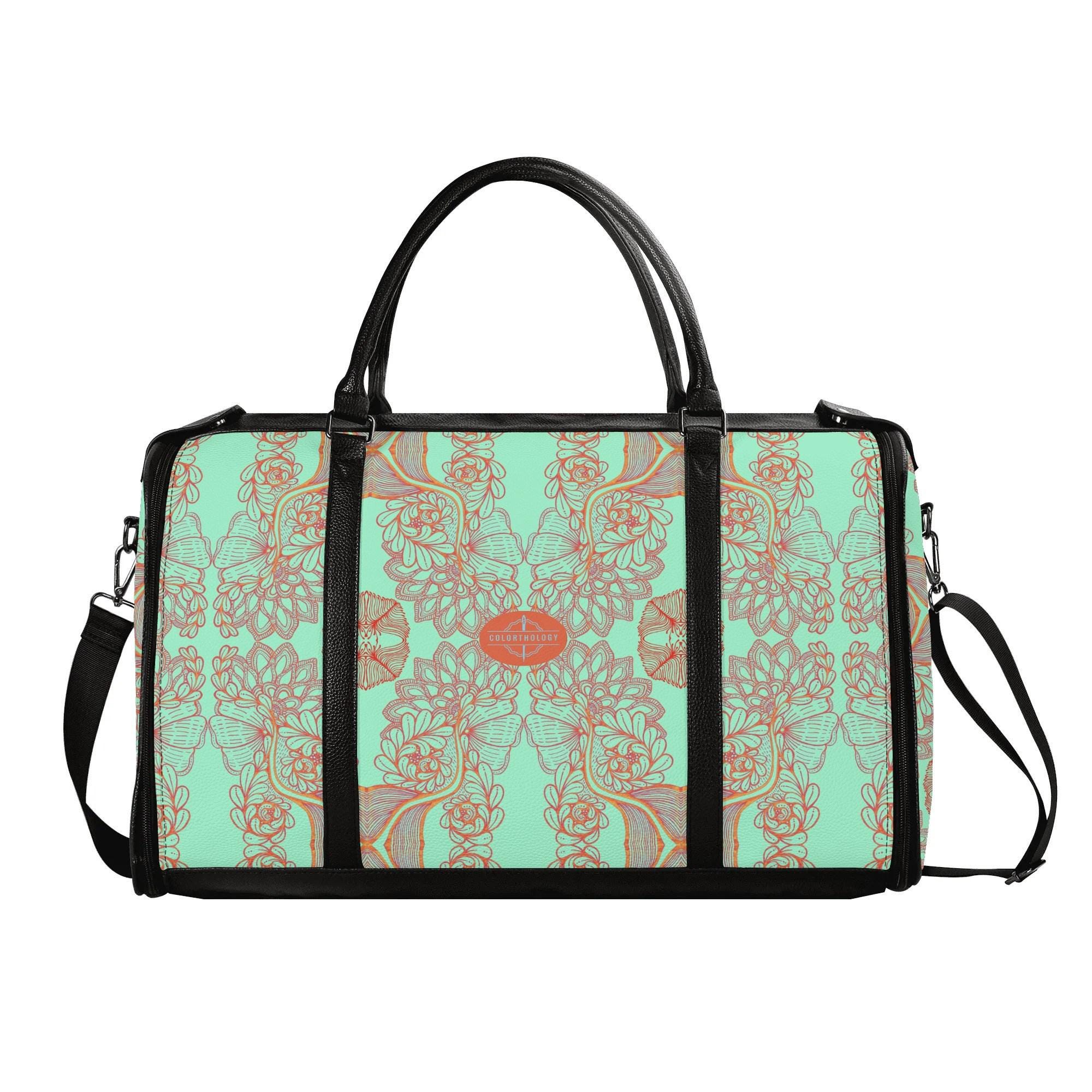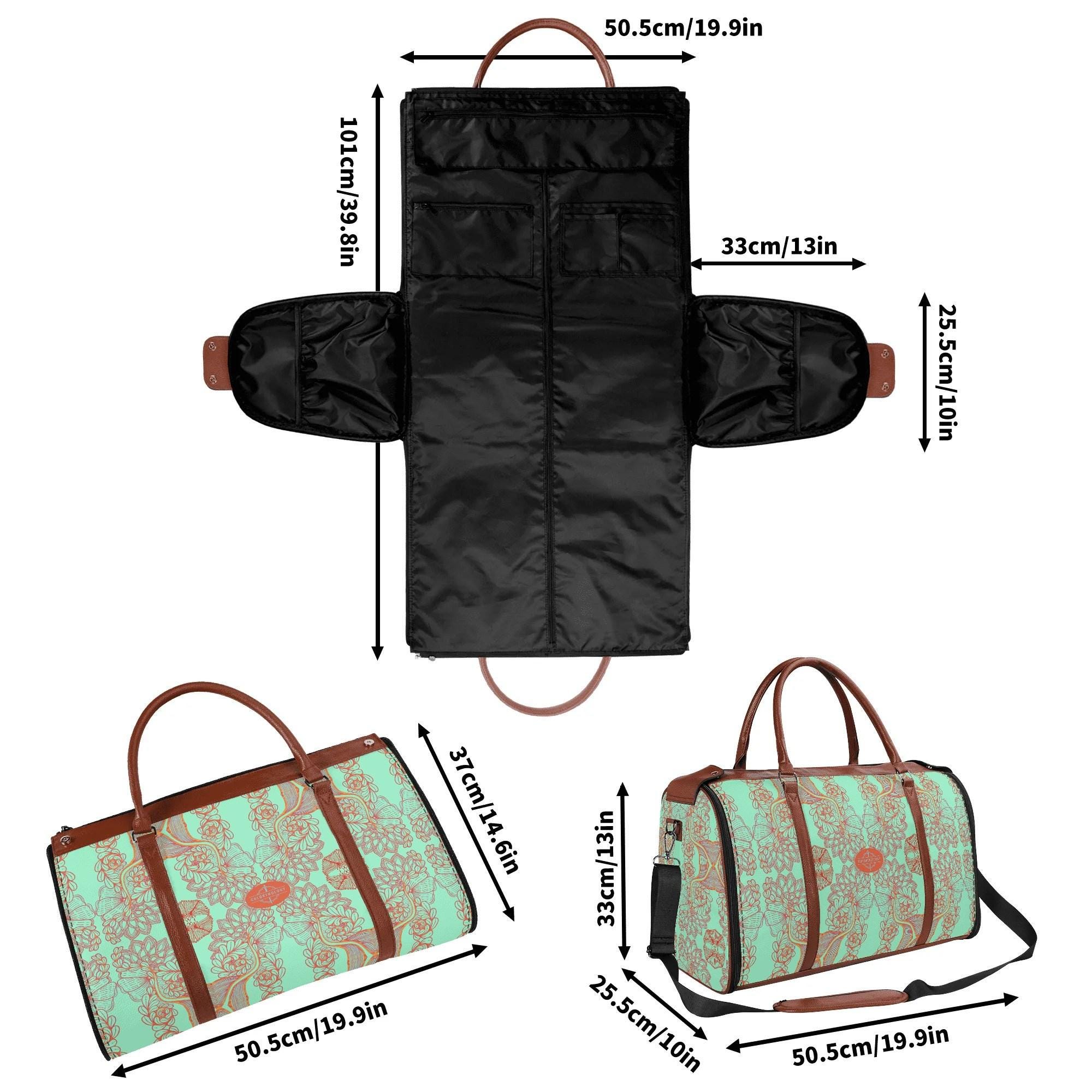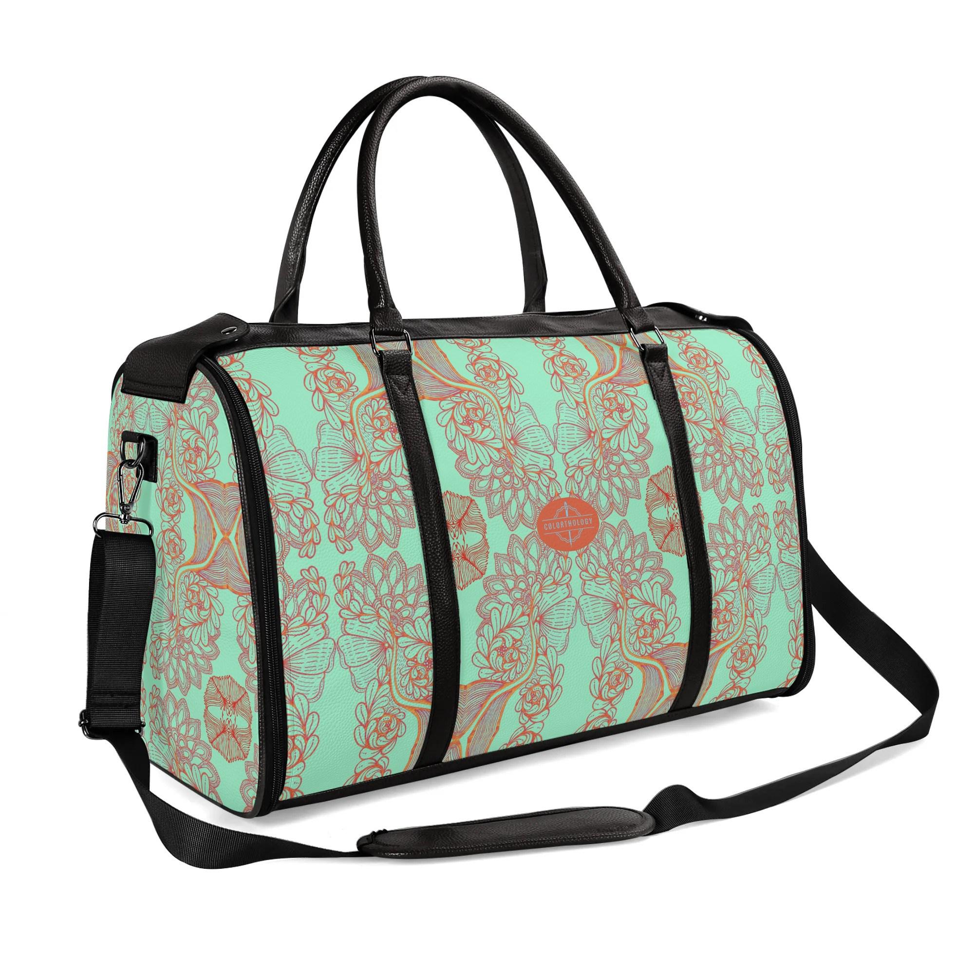 Teal Brocadesque Vegan Leather Duffle Bag. Foldable Travel Bag