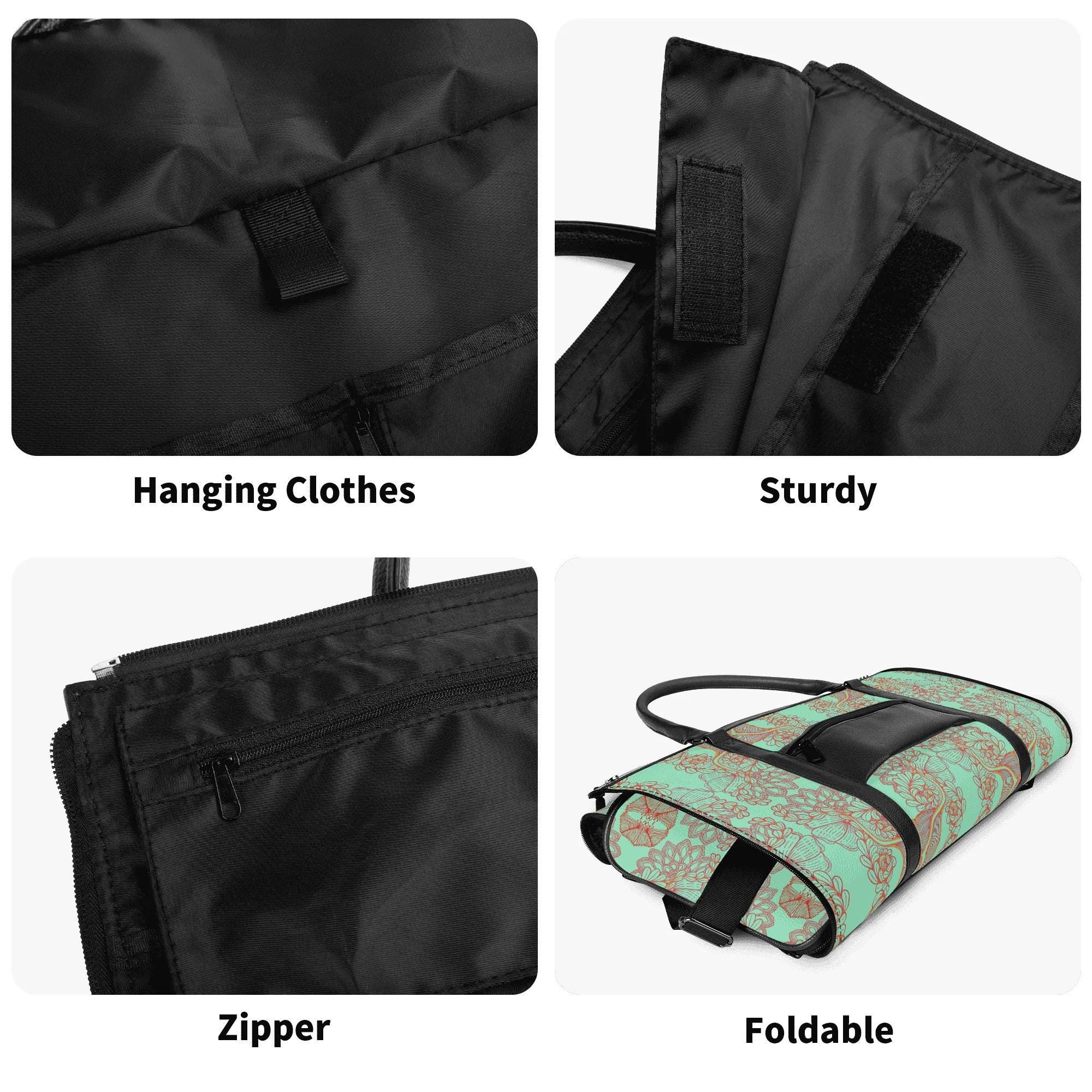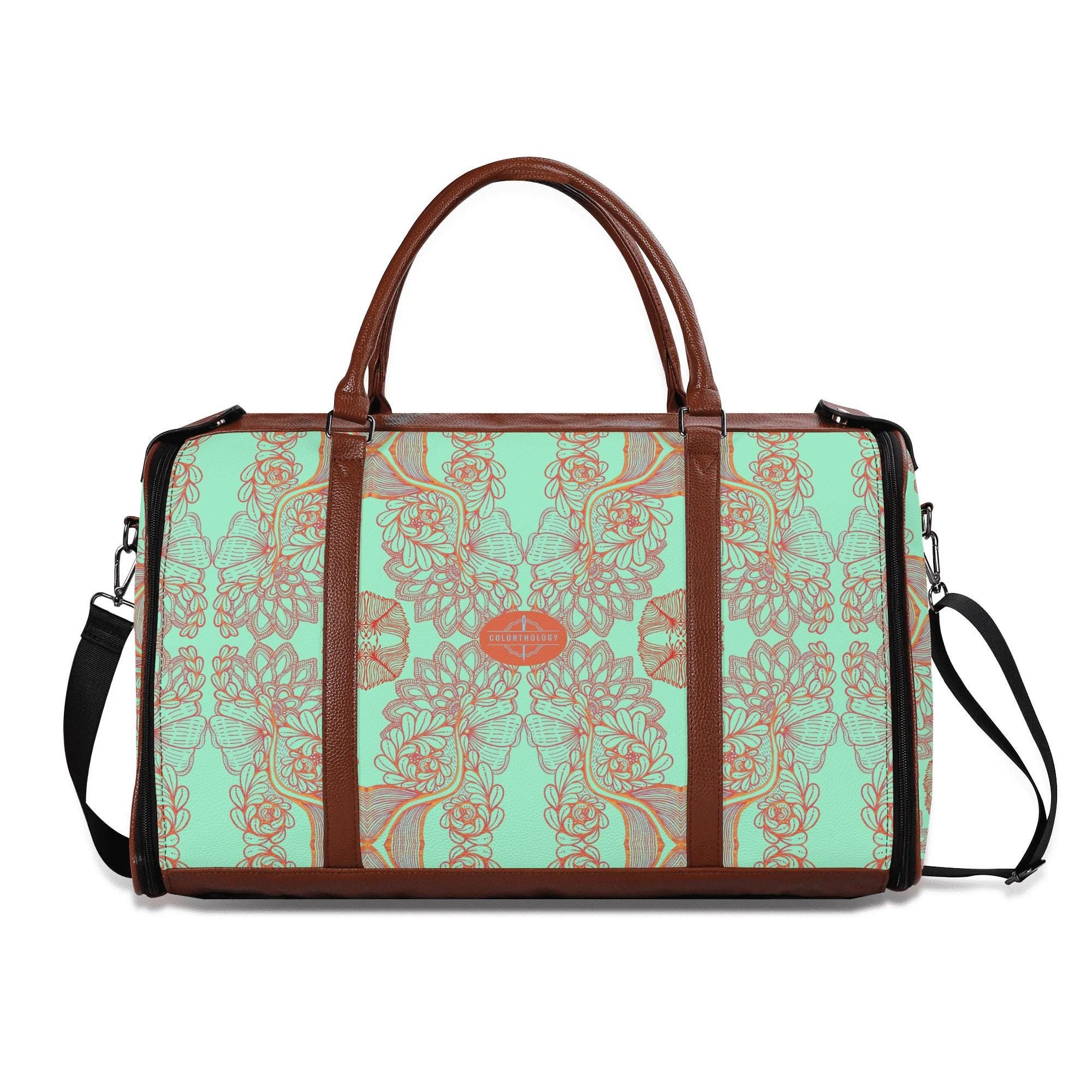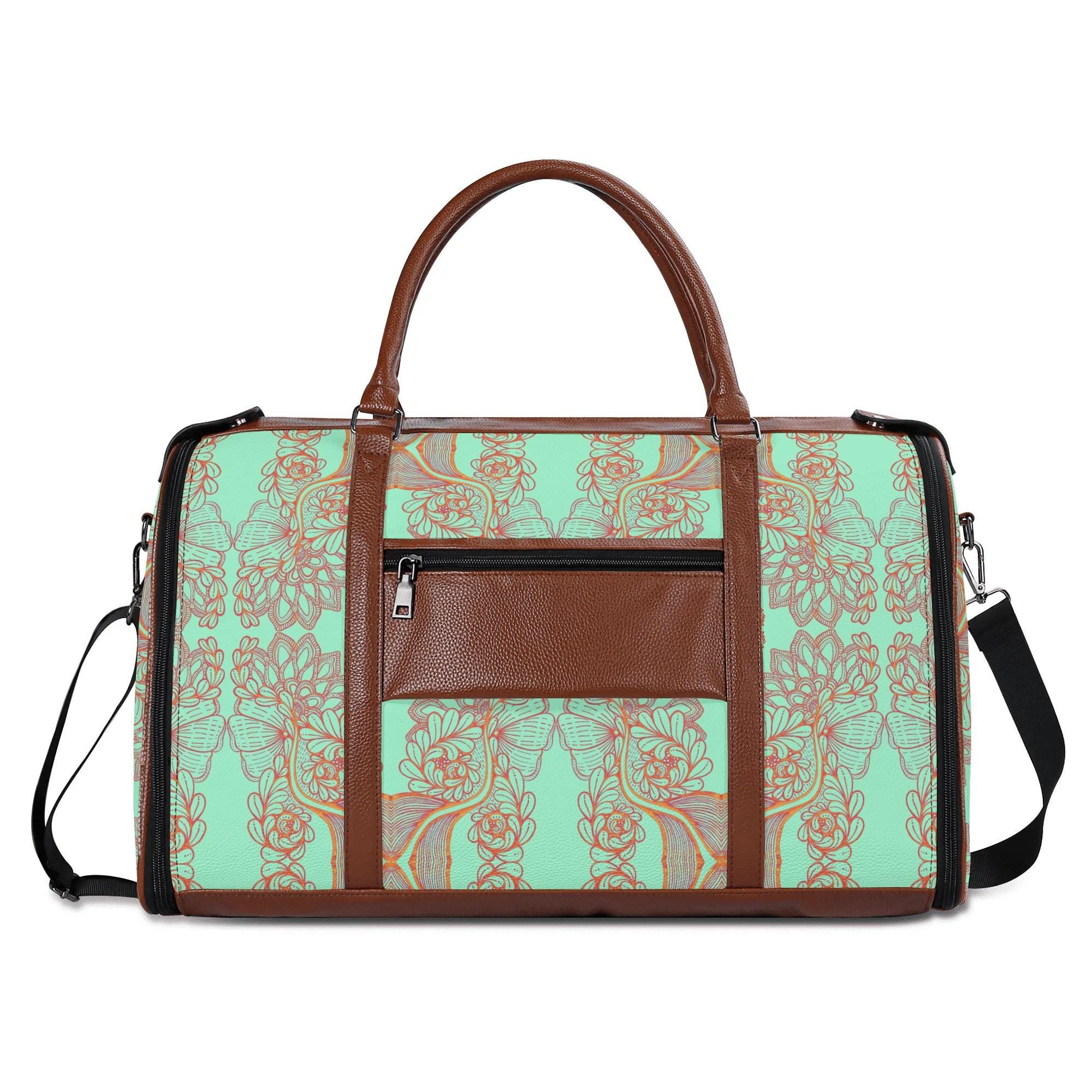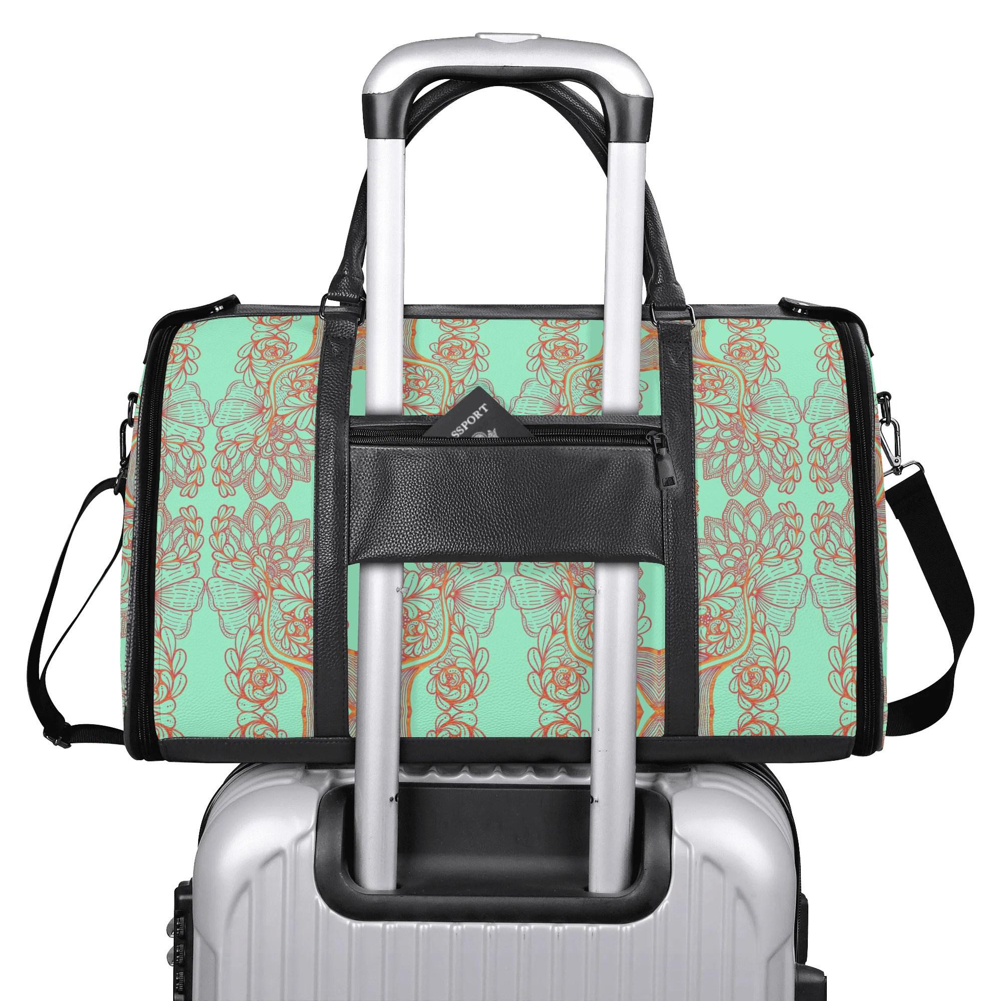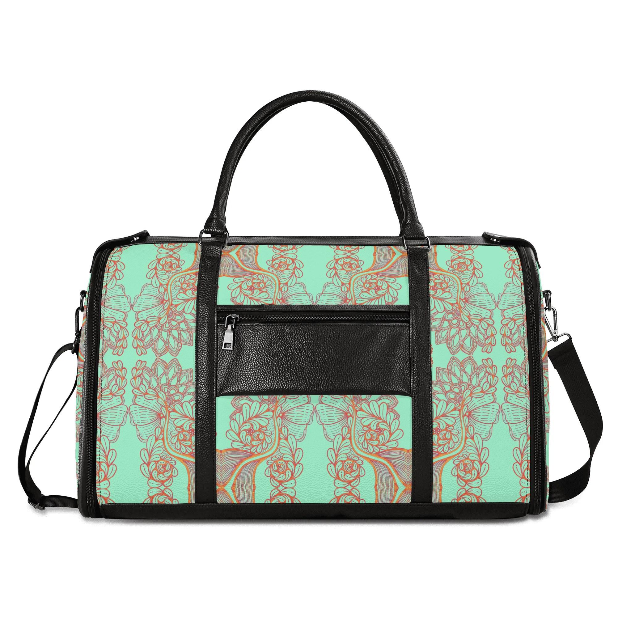 Teal Brocadesque Vegan Leather Duffle Bag. Foldable Travel Bag