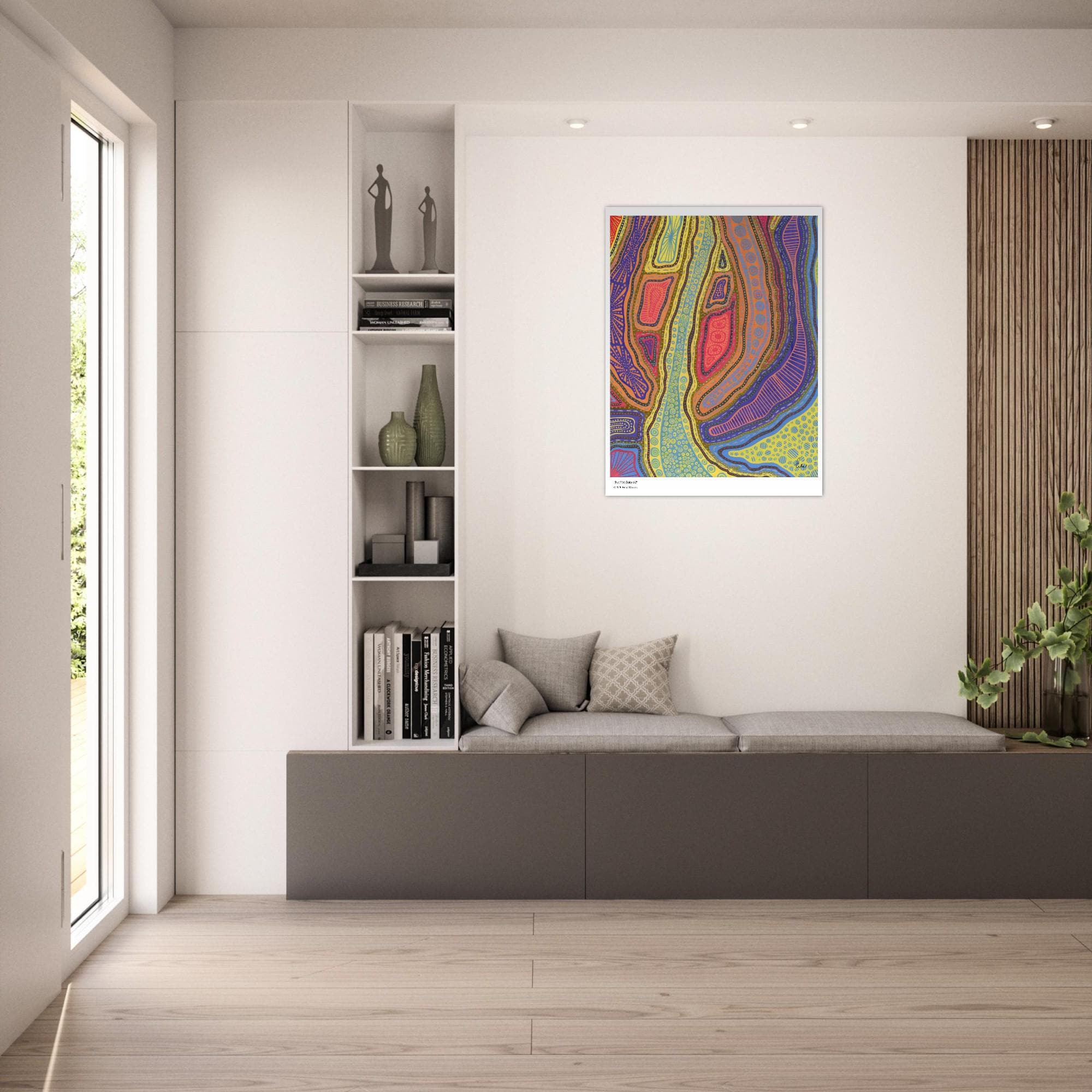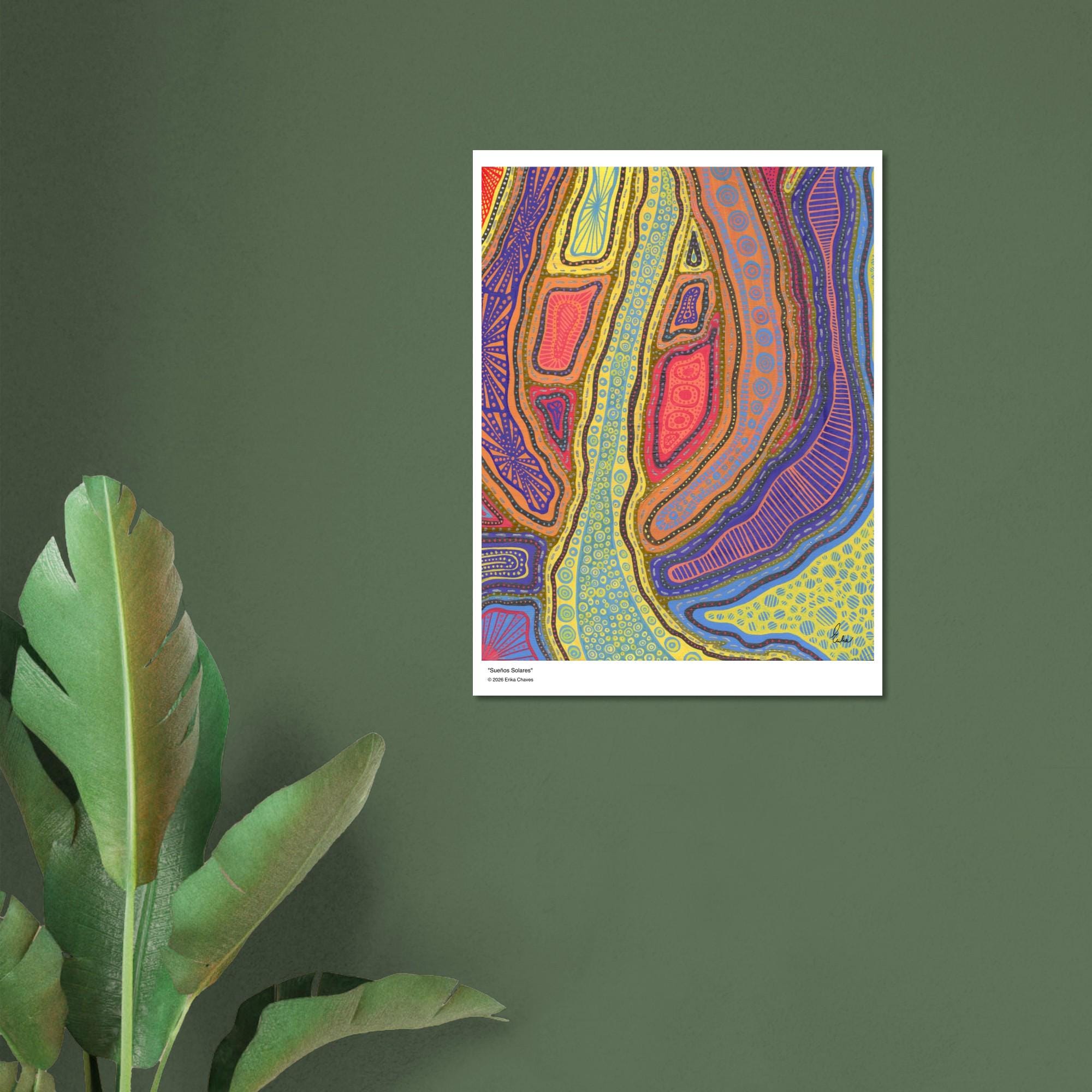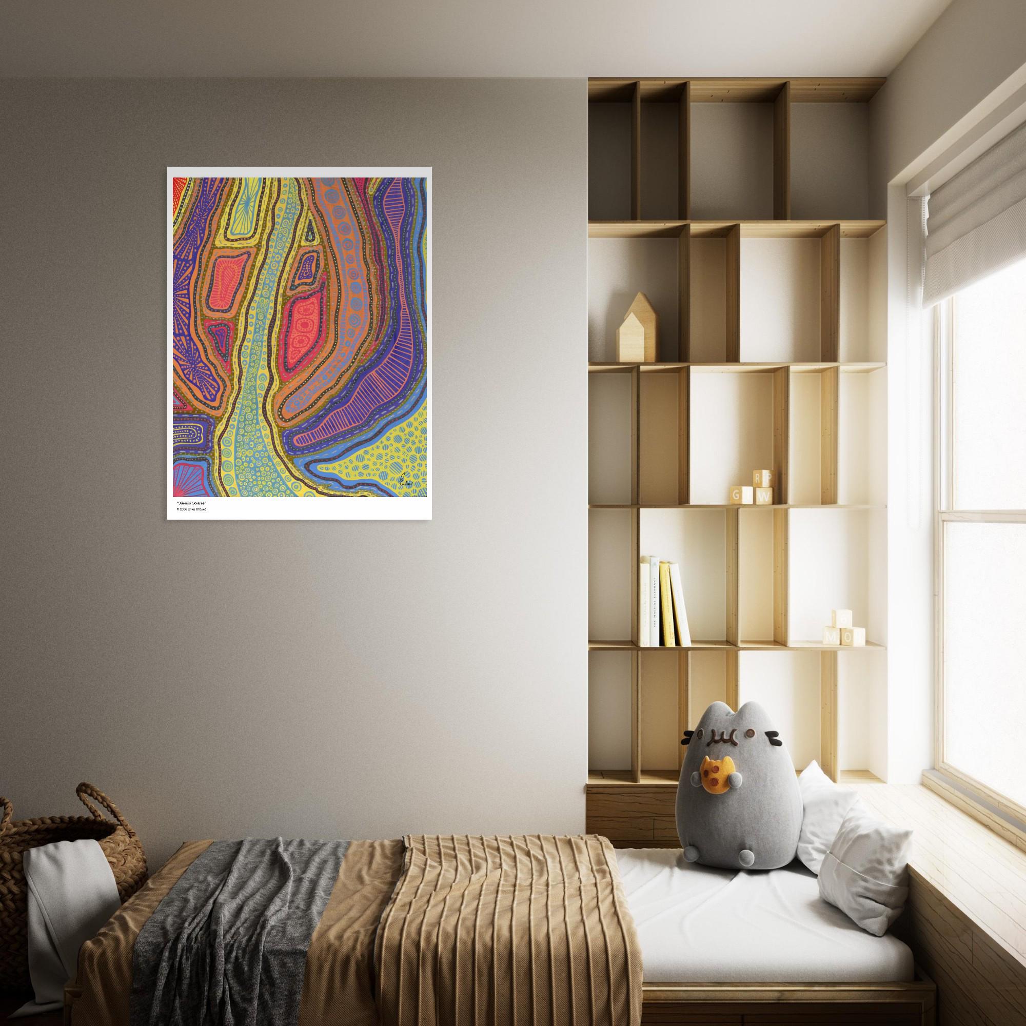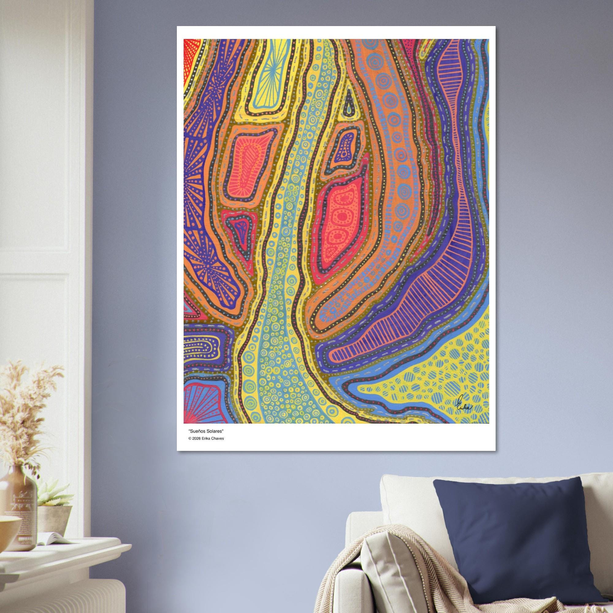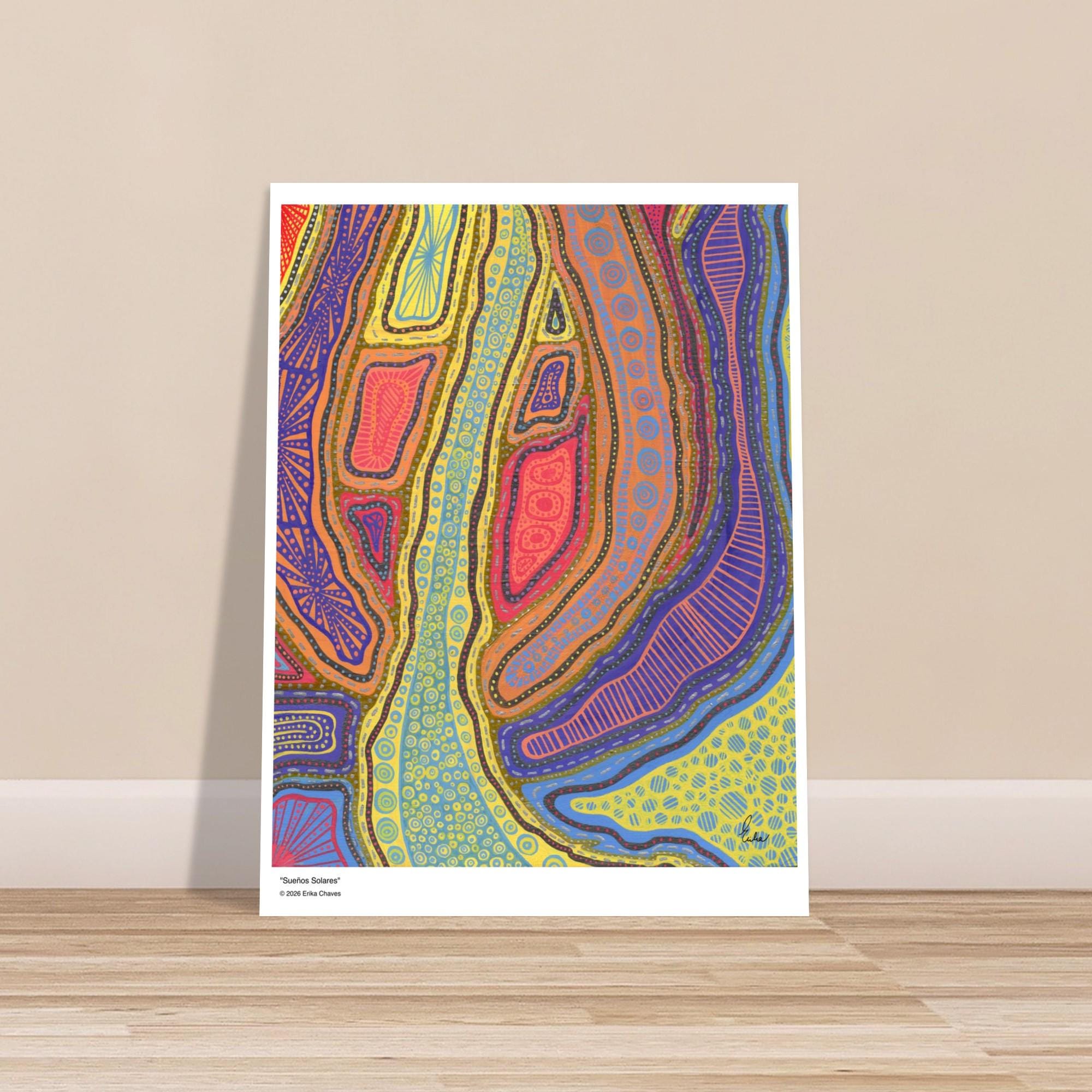 The Kakadu Art Print is a contemporary artwork inspired by the Indigenous Australian Art movement. This is an abstract design, Semi-Glossy Paper Poster, featuring a colorful patterned artwork. “Kakadu” was created by artist and Colorthology owner Erika Chaves. Created from imagination, a beautiful Australian trip, and layered pattern work, this piece features intricate motifs, and a colorful, eye‑catching centerpiece for any room.